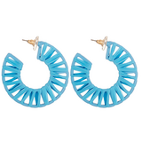 Σκουλαρίκια κρίκοι πλακέ από ψάθα και μέταλλο 45mm σε χρώμα γαλάζιο