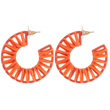Σκουλαρίκια κρίκοι πλακέ από ψάθα και μέταλλο 45mm σε χρώμα πορτοκαλί