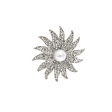 Καρφίτσα για το πέτο σε σχήμα ήλιου με πέρλα και λευκά στράς με μήκος 4 εκ σε ασημί απόχρωση