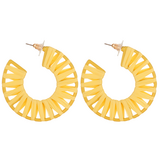 Σκουλαρίκια πλακέ κρίκοι(6cm) από ψάθα, σε χρώμα κίτρινο