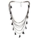 Κολιέ χειροποίητο, πολύσειρο από αλυσίδες & φούντες σε χρώμα μπλέ ,ασημί