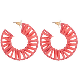Σκουλαρίκια κρίκοι πλακέ από ψάθα και μέταλλο 45mm σε χρώμα ρόζ