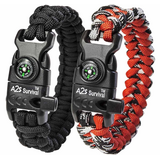A2S Βραχιόλι Επιβίωσης Paracord με Πυξίδα & Σπινθηριστή 2τμχ Black/Black