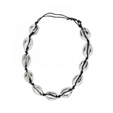 Κολιέ με μαύρο κορδόνι και κοχύλια σε ασημί ή χρυσό χρώμα