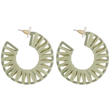 Σκουλαρίκια κρίκοι πλακέ από ψάθα και μέταλλο 45mm σε χρώμα πράσινο