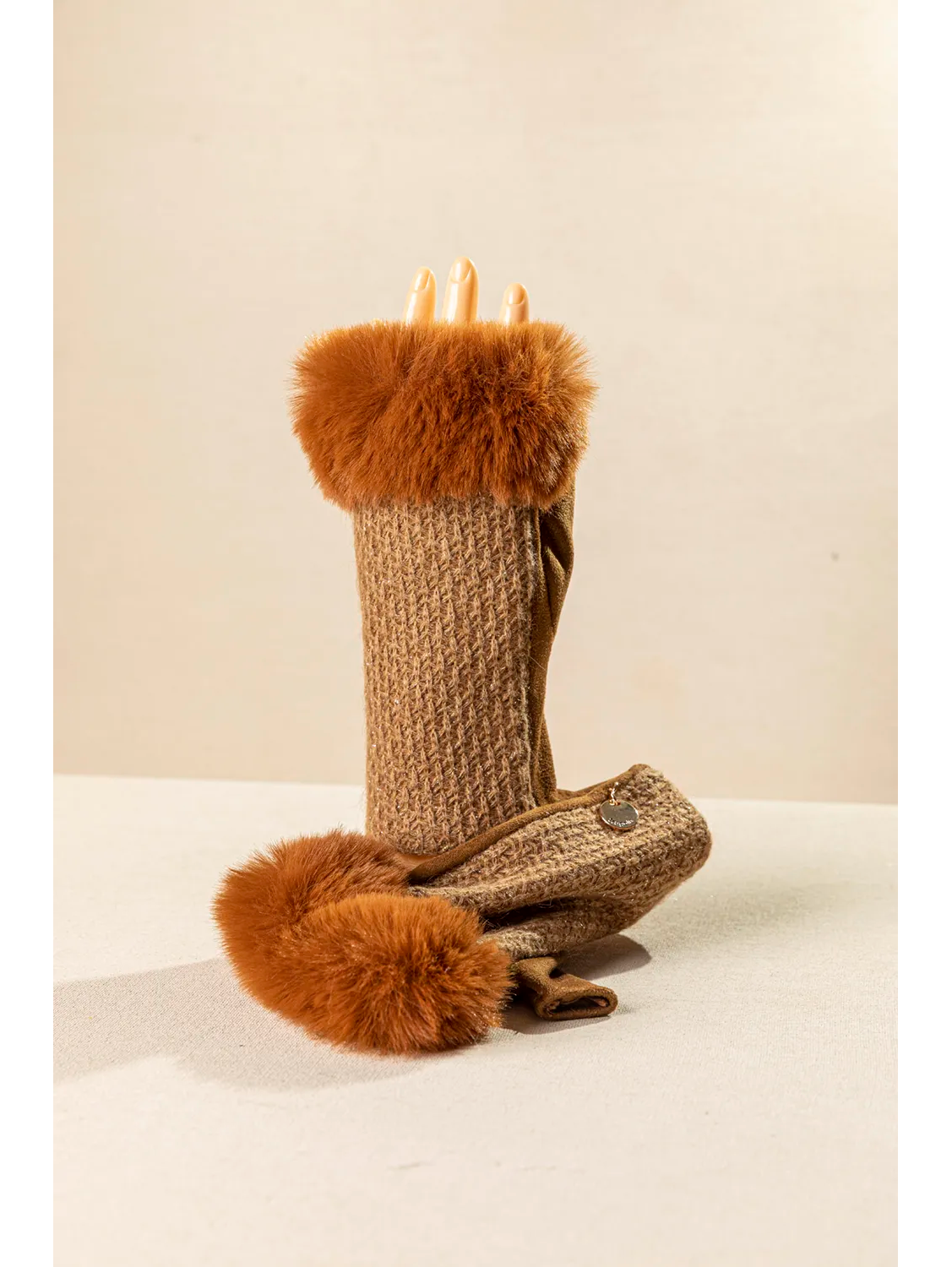 Γυναικείο γάντι μανσέτα ιδανική για να προσθέσει ζεστασία και πολυτέλεια στις εμφανίσεις σας. Ζεστό πλεκτό ύφασμα με διακριτική γυαλάδα, συνθετικό με μεταλλικά νήματα. Πλούσια faux γούνα. Ανοιχτό χωρίς δάχτυλα φοριέται εύκολα και αφήνει ελευθερία κινήσεων.