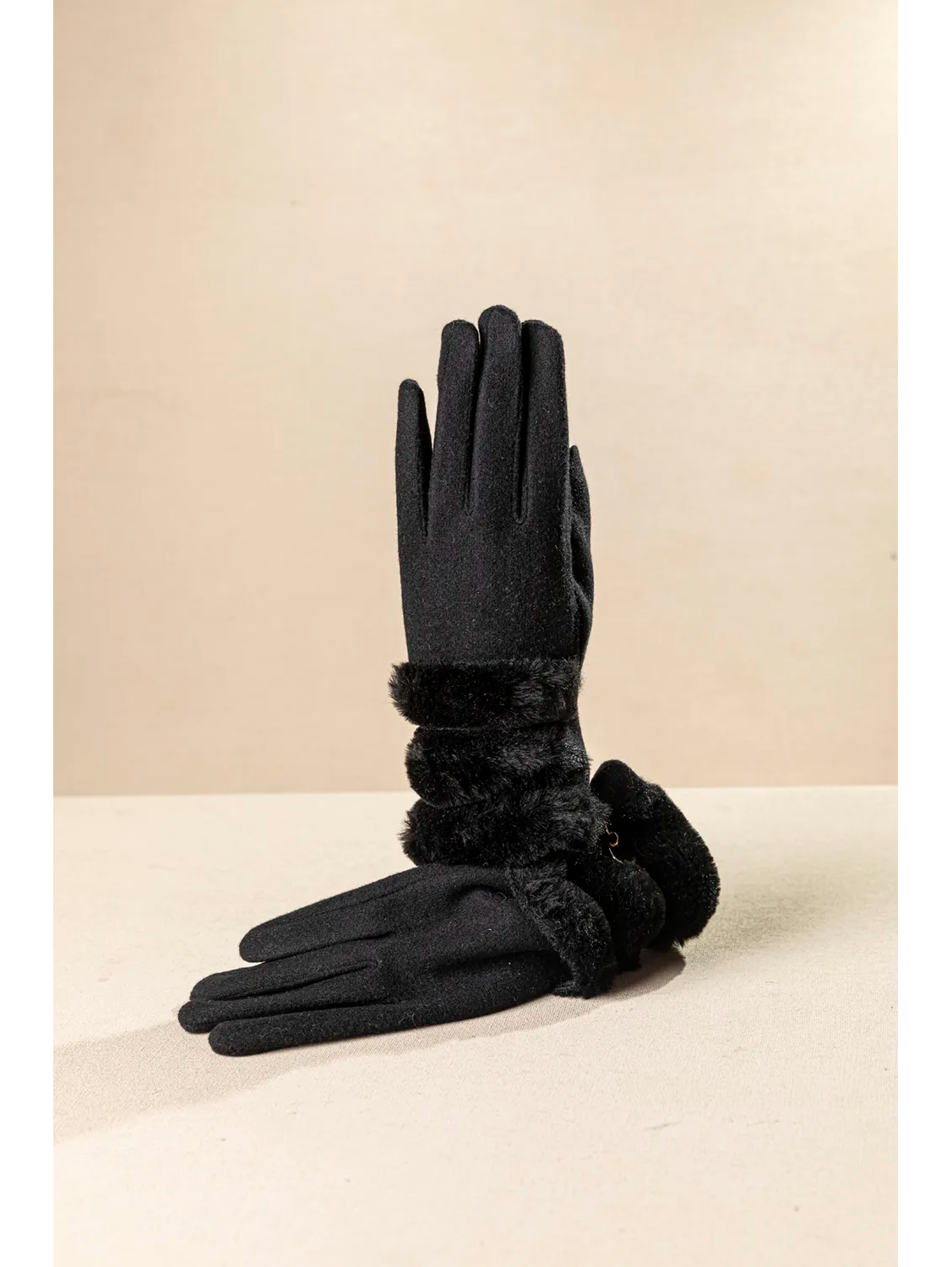 Κομψά και ζεστά γυναικεία γάντια με απαλή αφή και πολυτελή λεπτομέρεια με οικολογική γούνα στον καρπό.Ιδανικά για τις κρύες μέρες του Χειμώνα προσφέρουν στυλ και προστασία από το κρύο. Συνδιάζονται εύκολα με κάθε outfit. Διαθέτει ειδικό κέντημα για χρήση σε οθόνες αφής στον δείκτη και τον αντίχειρα και των δύο χεριών.