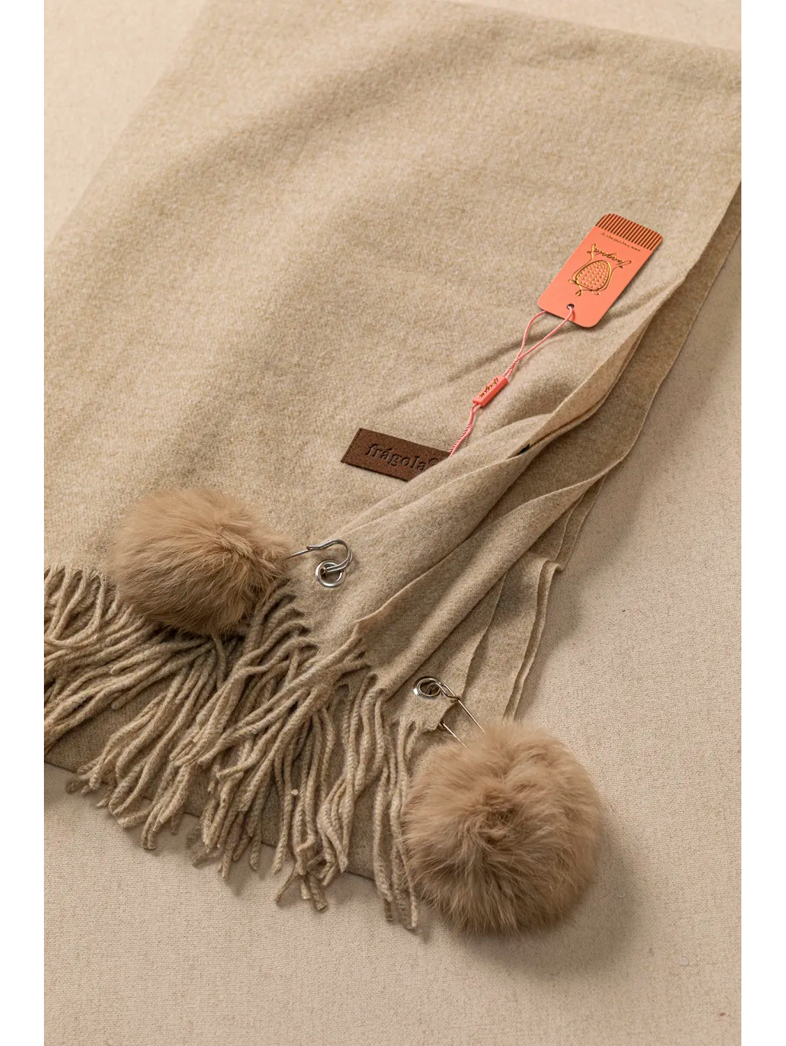 Απαλή και ζεστή πασμίνα με βελούδινη αίσθηση. Στις άκρες είναι διακοσμημένη με παραμάνες ασφαλείας οι οποίες δίνουν τη δυνατότηα να στερεωθεί η πασμίνα στον ένα ώμο ή να φορεθεί σαν εσάρπα!