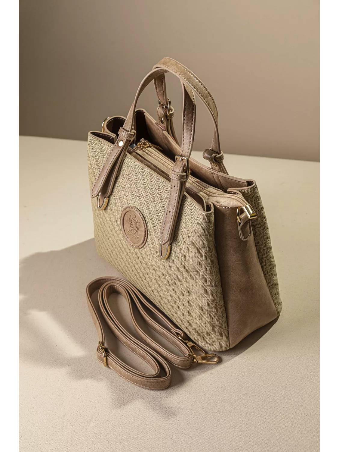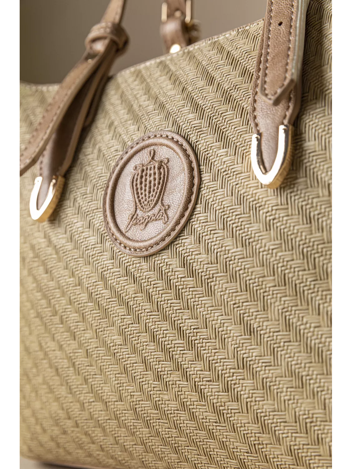 Υλικό: Συνθετικό δέρμα με τη μορφή ψάθας σε γήινα χρώματα και το Logo της εταιρείας.
