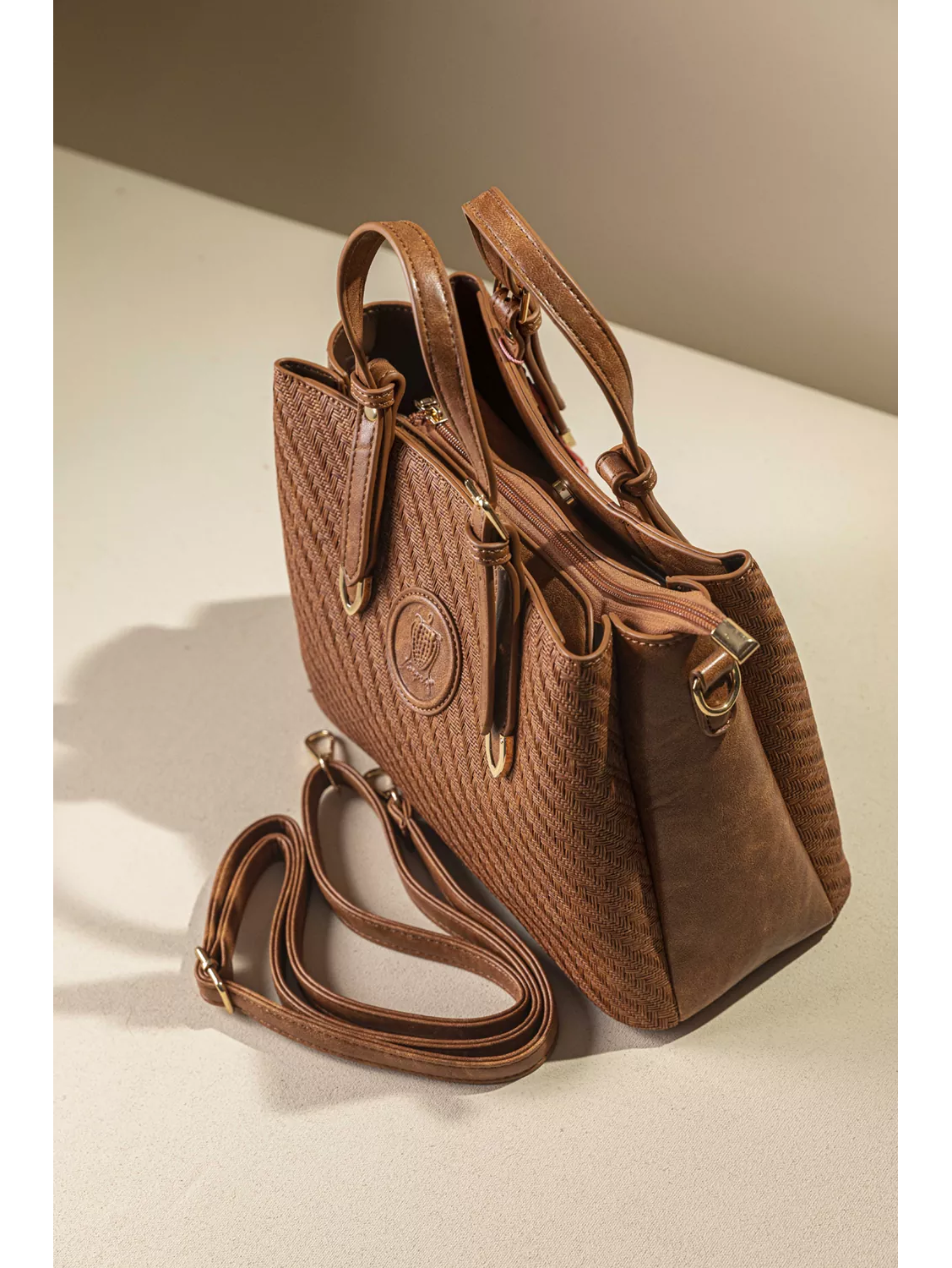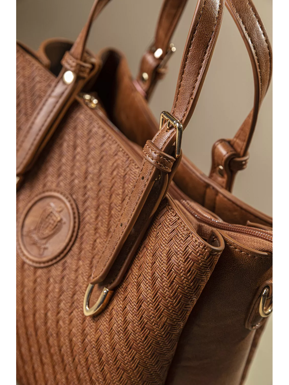 • Αυτή η τριθέσια τσάντα σε κλασική γραμμή είναι μια τσάντα που θα αγοράζεις ξανά και ξανά, γιατί ολοκληρώνει κάθε ντύσιμο από casual μέχρι και επαγγελματικό!!! • Τρεις διαχωρισμένες θέσεις, οι δύο κλείνουν με μαγνητικό button και η μια με φερμουάρ. • Στο εσωτερικό της φόδρας θα βρείτε όλα τα τσεπάκια (με φερμουάρ και χωρίς)για τα μικροαντικείμενά σας. • Οι μεταλλικές χρυσές λεπτομέρειες της, της προσδίδουν έξτρα πολυτέλεια! Διαθέτει έξτρα χεράκι αυξομειούμενο για να τη μετατρέψετε σε χιαστί. Υλικό: Συνθετικό δέρμα με τη μορφή ψάθας σε γήινα χρώματα και το Logo της εταιρείας.