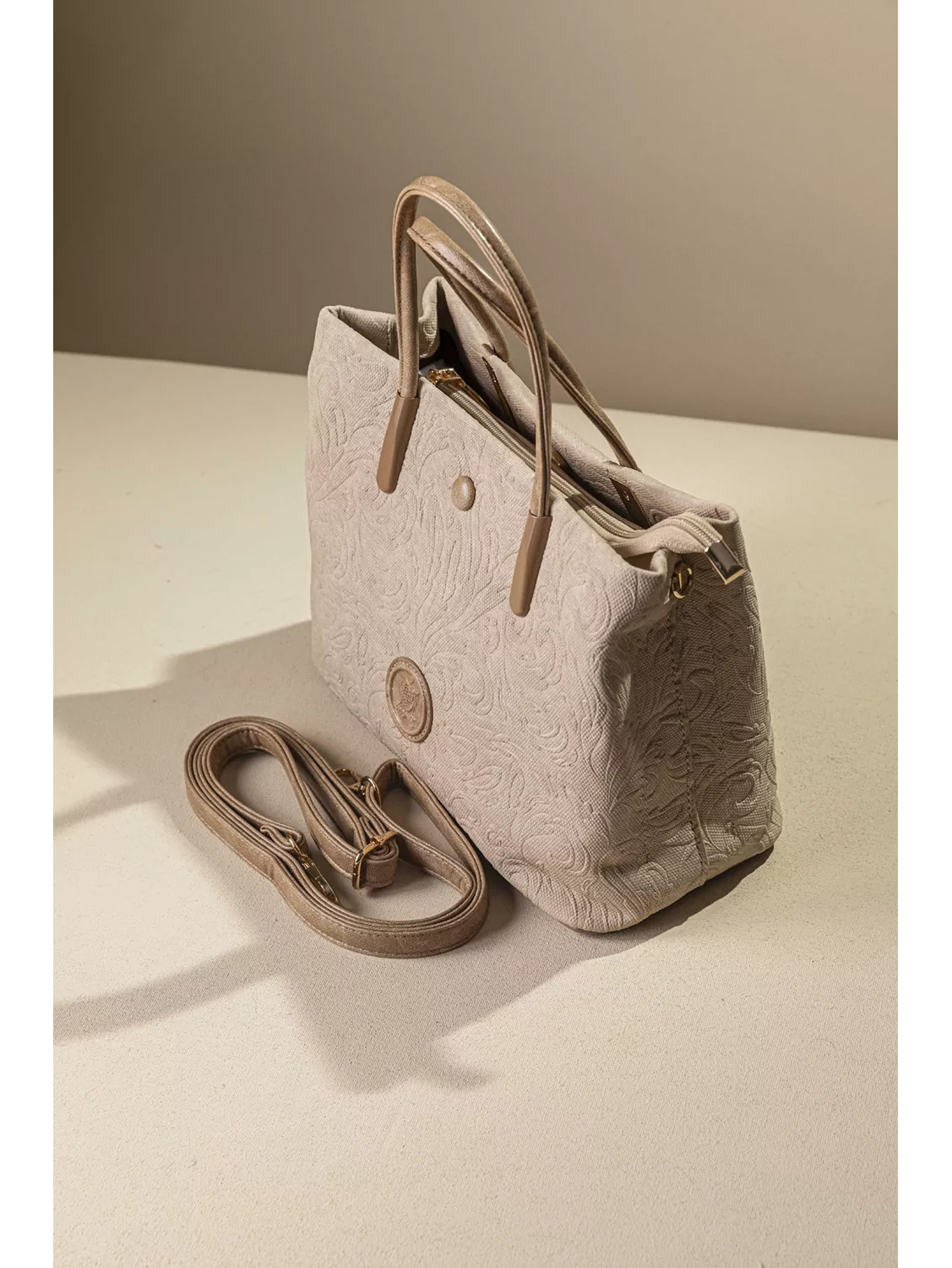 • Αυτή η τριθέσια τσάντα μεσαίου μεγέθους είναι η μια τσάντα που ολοκληρώνει κάθε ντύσιμο!! • Τρεις διαχωρισμένες θέσεις, οι δύο κλείνουν με μαγνητικό button και η μια με φερμουάρ. • Στο εσωτερικό της φόδρας θα βρείτε όλα τα τσεπάκια (με φερμουάρ και χωρίς)για τα μικροαντικείμενά σας. • Μεταλλικές λεπτομέρειες με ηλεκτροστατική βαφή της προσθέτουν elegant στιλ. • Διαθέτει έξτρα χεράκι αυξομειούμενο για να τη μετατρέψετε σε χιαστί. Υλικό: Συνθετικό δέρμα με υφή canva και εντυπωσιακό ανάγλυφο print.