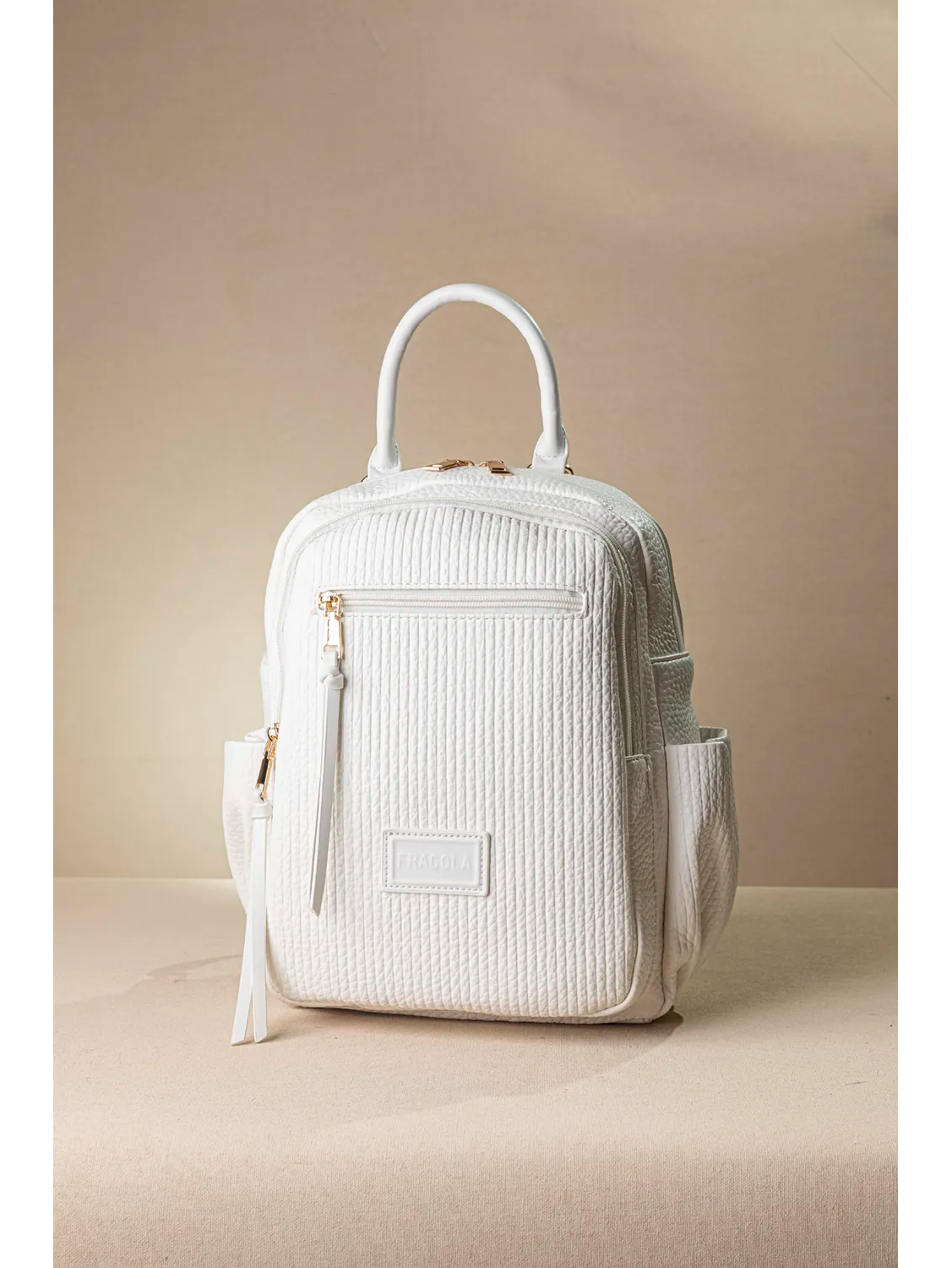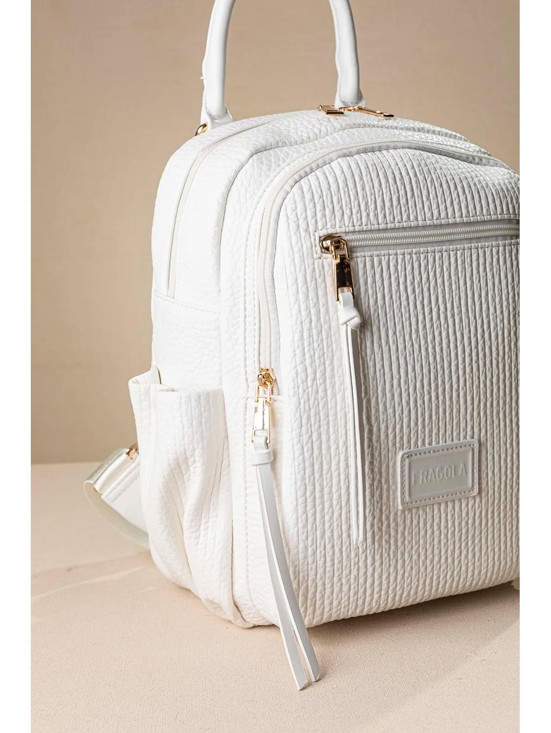 Δίχωρο σακίδιο με δυο απολύτως διαχωρισμένες θέσεις που κλείνουν με φερμουάρ. Το μπροστινό μέρος φέρει μια έξτρα τσέπη που κλείνει με φερμουάρ.Στον εσωτερικό χώρο βρίσκουμε τα βοηθητικά τσεπάκια και εξωτερική βοηθητική τσέπη με φερμουάρ στο πίσω μέρος του. Στο πλάι διαθέτει δύο τσέπες που κλείνουν με μαγνητικό μπουτόν. Τα χεράκια των ώμων είναι δερματίνη με ιμάντα για μεγαλύτερη άνεση.