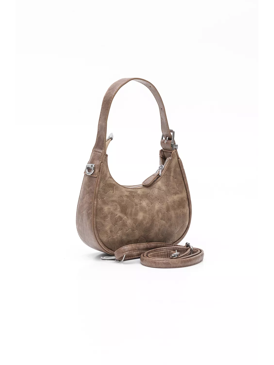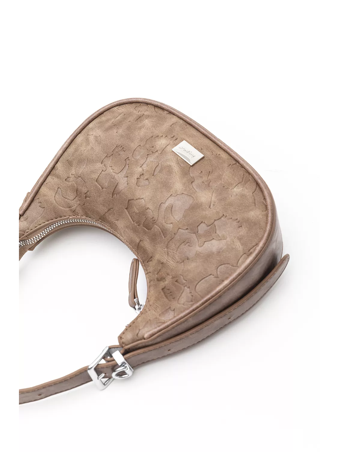 Μικρή γόνδολα με αυξομειούμενο χέρι με εντυπωσιακή αγκράφα. Διαθέτει έξτρα μακρύ χέρι για να μετατραπεί σε χιαστί. Η κεντρική της θέση κλείνει με φερμουάρ και μέσα θα βρείτε το κλασικό τσεπάκι με το φερμουάρ αλλά και όλα τα κλασικά τσεπάκια για τα μικροαντικείμενα σας. Υλικό: Συνθετικό δέρμα σταμπωμένο με πυρογραφία με ανάγλυφο αποτέλεσμα.