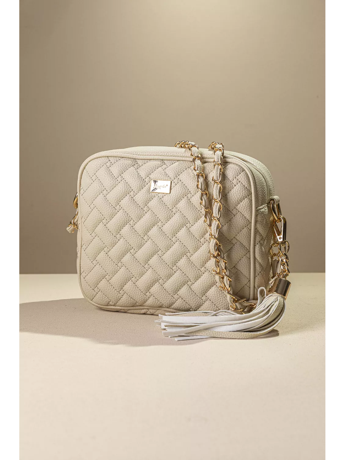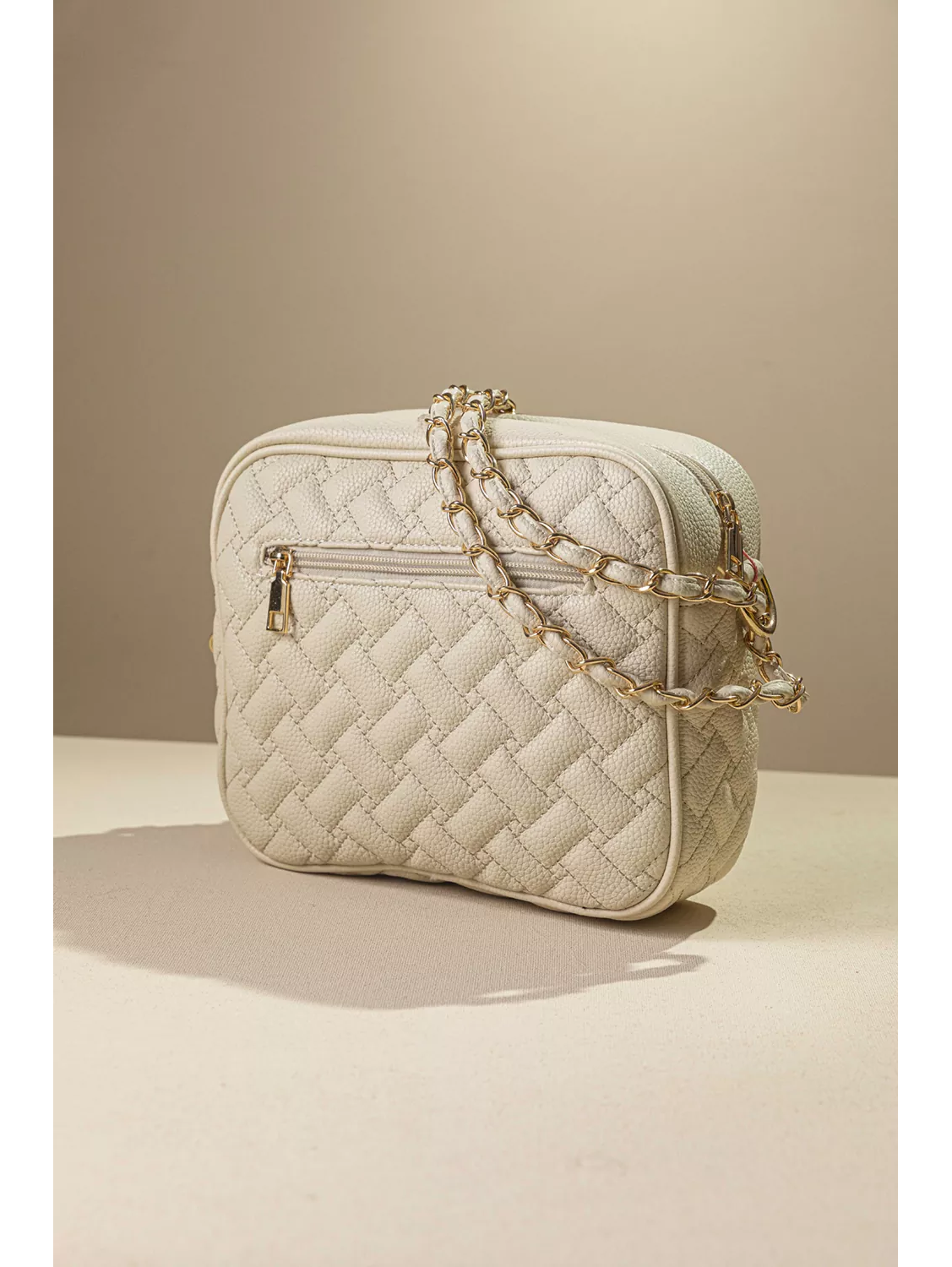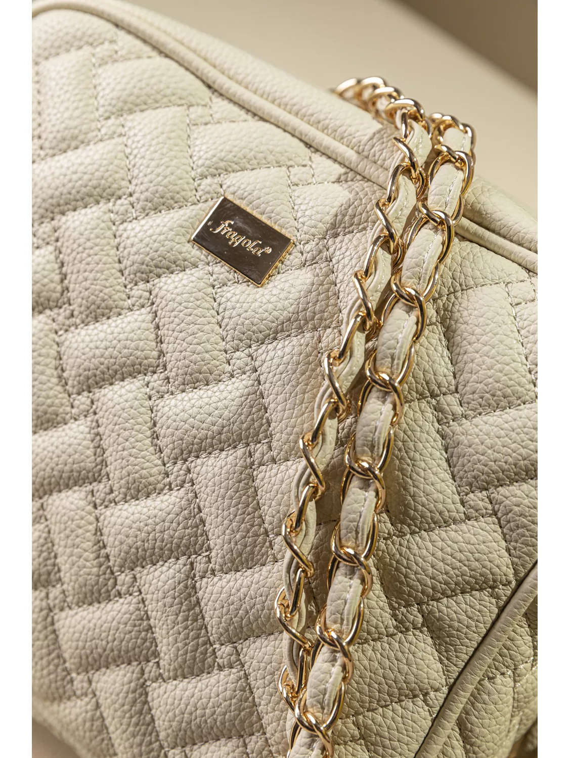 • Μικρή cute τσάντα με καπιτονέ υφή. • Ενιαίος χώρος αποθήκευσης που κλείνει με φερμουάρ και τα κλασικά τσεπάκια στη φόδρα. • Η αλυσίδα της προσφέρει ένα υπέροχο στιλ. • Μπορεί να φορεθεί χιαστί ή ώμου! Υλικό: Μαλακό συνθετικό δέρμα με ιδιαίτερα puffy γαζιά.