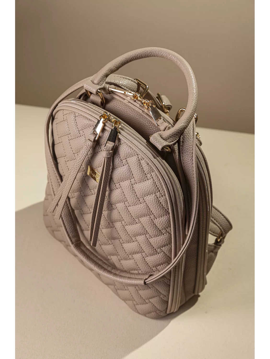 • Διθέσιο πολυμορφικό σακίδιο, με απόλυτα διαχωρισμένους τους δύο χώρους του, που κλείνουν με φερμουάρ. • Βοηθητική εξωτερική πίσω τσέπη που κλείνει με φερμουάρ και φυσικά όλα τα βοηθητικά τσεπάκια στο εσωτερικό της τσάντας. • Ευέλικτα χεράκια για την πλάτη που με ένα απλό τράβηγμα μετατρέπουν την τσάντα σε τσάντα ώμου. • Χρυσές μεταλλικές λεπτομέρειες προσθέτουν μια πινελιά πολυτέλειας. Υλικό: Μαλακό συνθετικό δέρμα με puffy καπιτονέ υφή. Το φινίρισμα του προσδίδει την αίσθηση πολυτελούς και στιβαρής κατασκευής.