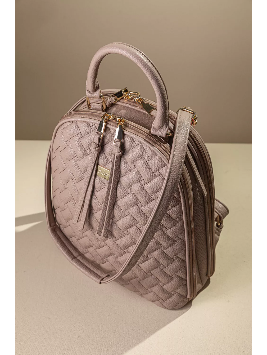 • Διθέσιο πολυμορφικό σακίδιο, με απόλυτα διαχωρισμένους τους δύο χώρους του, που κλείνουν με φερμουάρ. • Βοηθητική εξωτερική πίσω τσέπη που κλείνει με φερμουάρ και φυσικά όλα τα βοηθητικά τσεπάκια στο εσωτερικό της τσάντας. • Ευέλικτα χεράκια για την πλάτη που με ένα απλό τράβηγμα μετατρέπουν την τσάντα σε τσάντα ώμου. • Χρυσές μεταλλικές λεπτομέρειες προσθέτουν μια πινελιά πολυτέλειας. Υλικό: Μαλακό συνθετικό δέρμα με puffy καπιτονέ υφή. Το φινίρισμα του προσδίδει την αίσθηση πολυτελούς και στιβαρής κατασκευής.