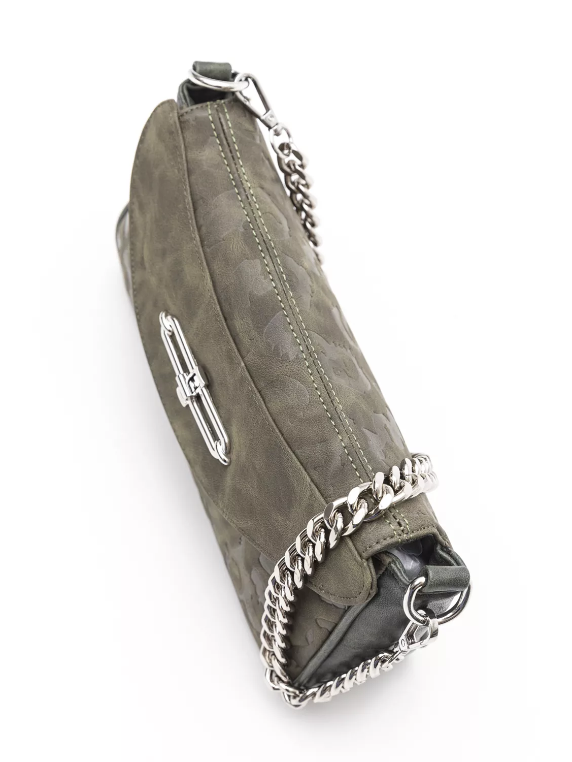 Elegant σταθερή τσάντα ιδανική για απογευματινές και βραδινές εξόδους! Κλείνει με καπάκι με κλειδαριά και κάτω από το καπάκι διαθέτει φερμουάρ. Ενιαίος χώρος με τα κλασικά τσεπάκια στο εσωτερικό της. Χοντρή τροχισμένη αλυσίδα η οποία δίνει αέρα κομψότητα και τη δυνατότητα να κρατηθεί στον ώμο με αυτή. Παράλληλα υπάρχει και δεύτερο χεράκι δερματίνης που μπορεί να μετατραπει σε χιαστί. Υλικό: Συνθετικό δέρμα σταμπωμένο με πυρογραφία με ανάγλυφο αποτέλεσμα.