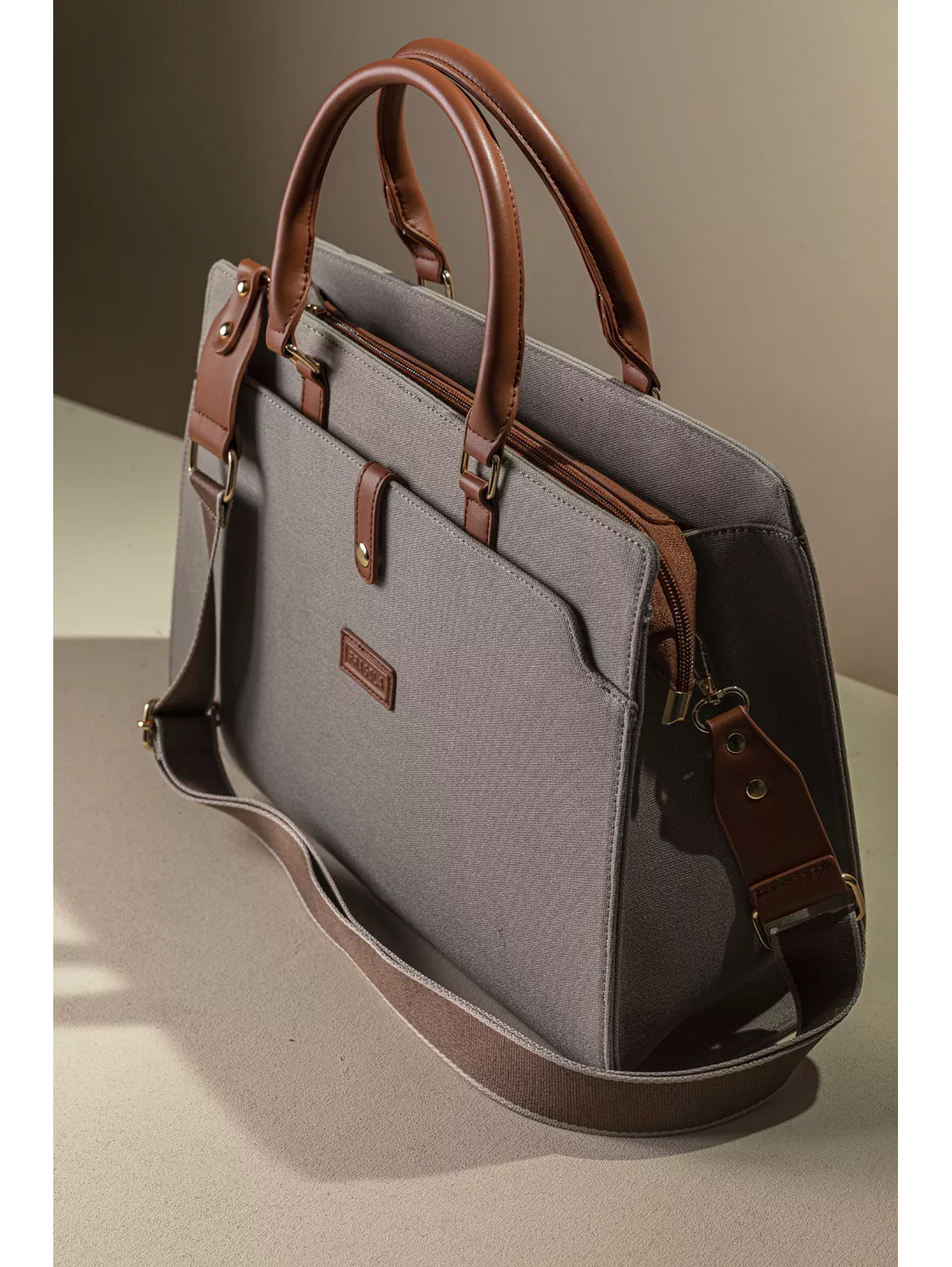 • Κλασική και διαχρονική τσάντα ιδανική για επαγγελματική και καθημερινή χρήση. • Διαθέτει ξεχωριστή τσέπη με δικό της κούμπωμα προσφέροντας πρακτική αποθήκευση για tablet. • Η κεντρική θήκη της τσάντας κλείνει με φερμουάρ εξασφαλίζοντας ασφάλεια και οργάνωση. • Διαθέτει στρογγυλά σταθερά χέρια για κράτημα στο χέρι καθώς και αποσπώμενο ιμάντα ώστε να φοριέται άνετα και στον ώμο ή χιαστί. • Ένα κομψό και λειτουργικό αξεσουάρ που συνδυάζει άνεση, πρακτικότητα και στυλ για το γραφείο. Υλικό: Μονόχρωμη υφασμάτινη με λεπτομέρειες συνθετικό δέρμα.