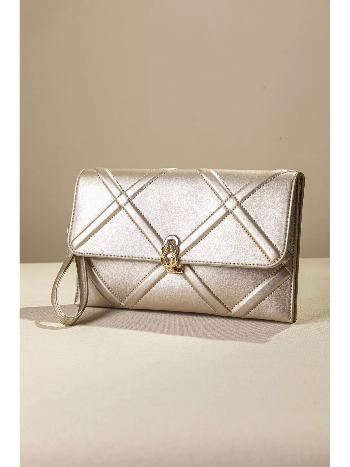 • Το καπιτονέ γεωμετρικό σχέδιο προσδίδει μοντέρνο χαρακτήρα ενώ το μεταλλικό κούμπωμα σε χρυσό τόνο ολοκληρώνει το design με μια πολυτελή πινελιά.