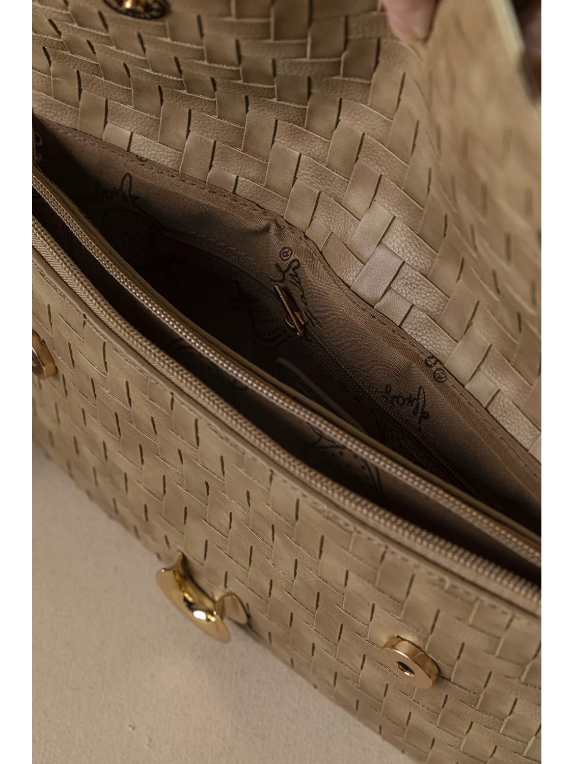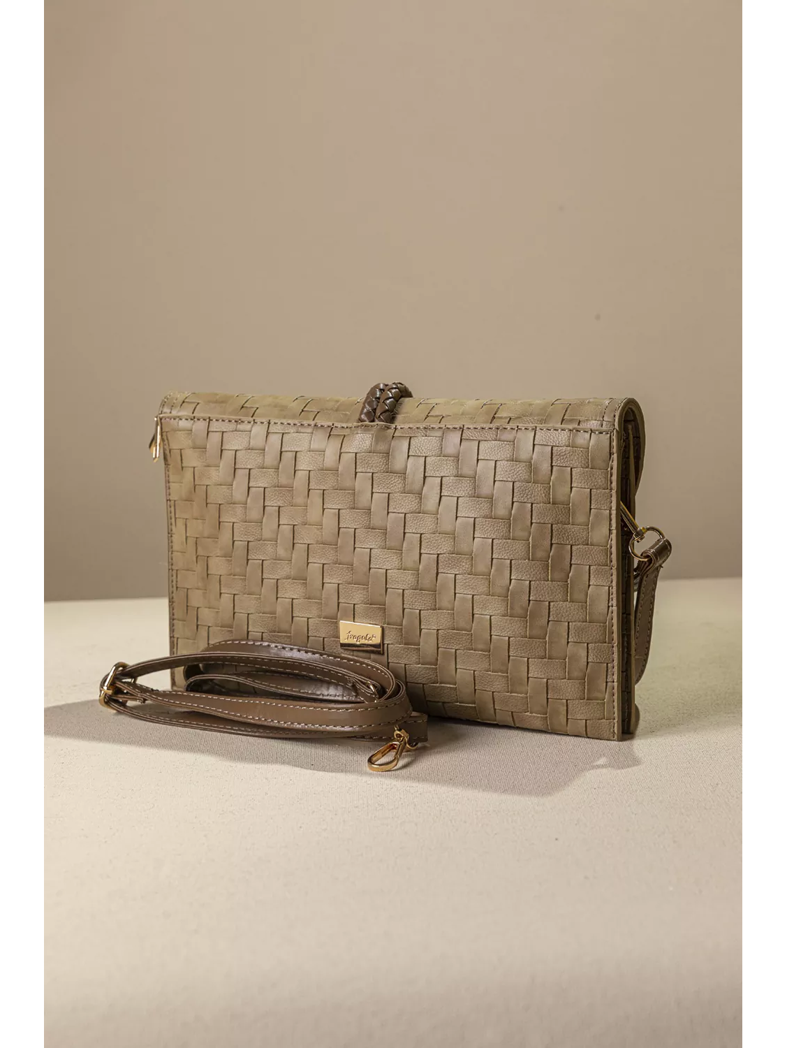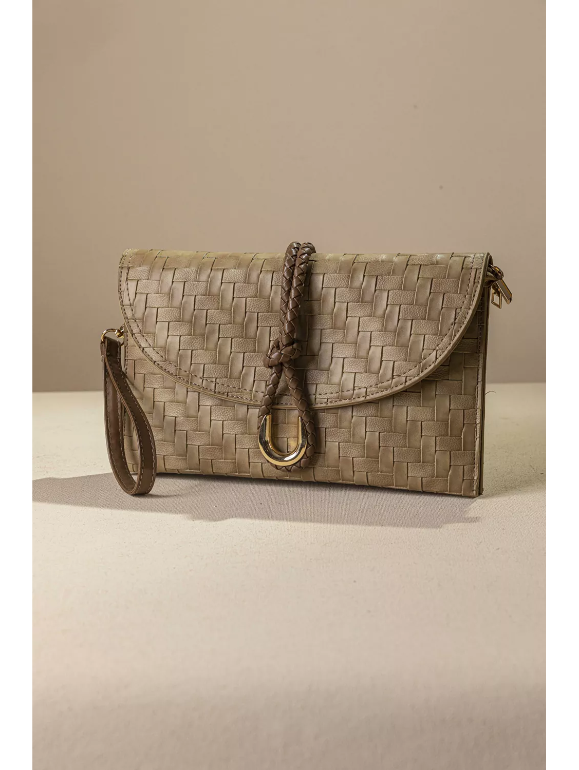 • Το διακοσμητικό πλεκτό στοιχείο και η μεταλλική λεπτομέρεια σε χρυσό τόνο, προσθέτει μια διακριτική πινελιά πολυτέλειας.