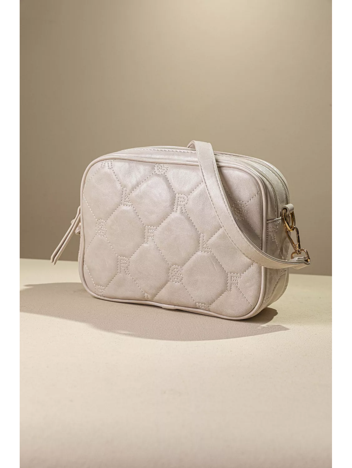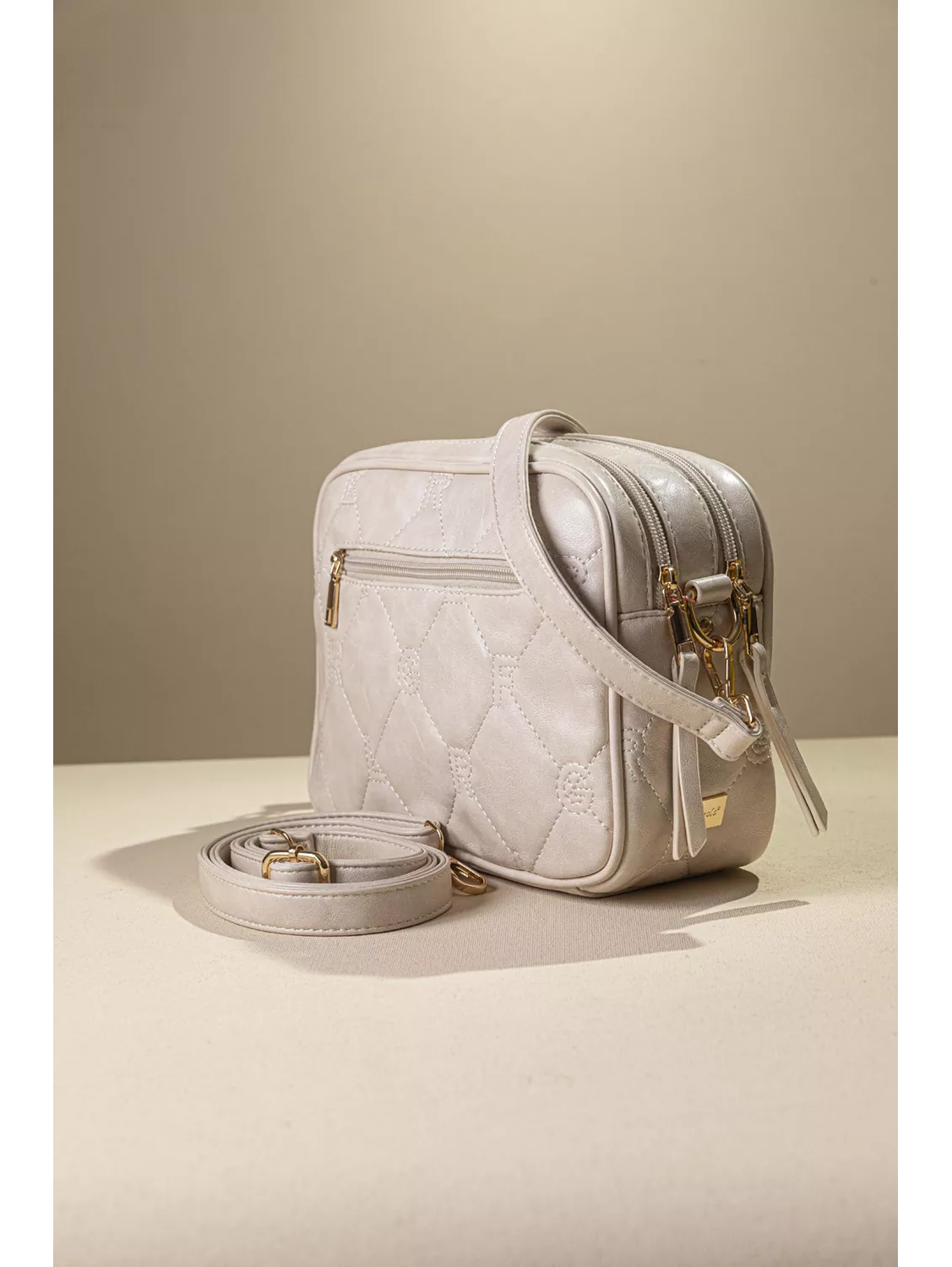 • Τριθέσια κομψή τσάντα χειρός με ιδιέτερη καπιτονέ υφή και όψη παλαιομένου δέρματος που εμφανίζει τα γράμματα της εταιρίας με χρυσό εντυπωσιακό κλείσιμο. • Εκτός από το κοντό πτησόμενο χέρι περιλαμβάνει μακρύ χέρι για χιαστί κράτημα.Ιδανική για chic καθημερινές και βραδινές εμφανίσεις. Υλικό: Μαλακό συνθετικό δέρμα με παλαιομένη όψη και καπιτονέ γαζιά που απεικονίζουν τα γράμματα της εταιρείας.