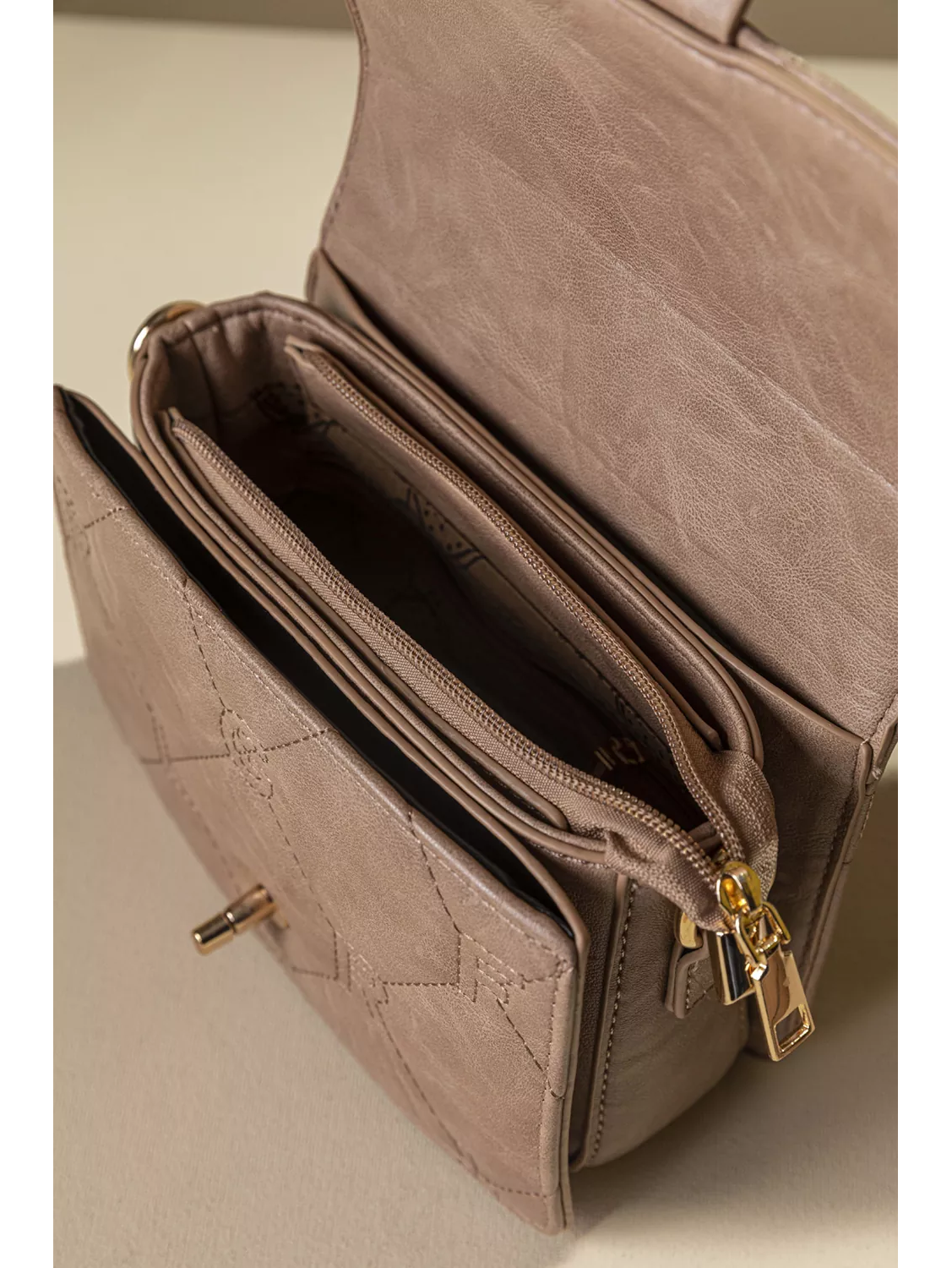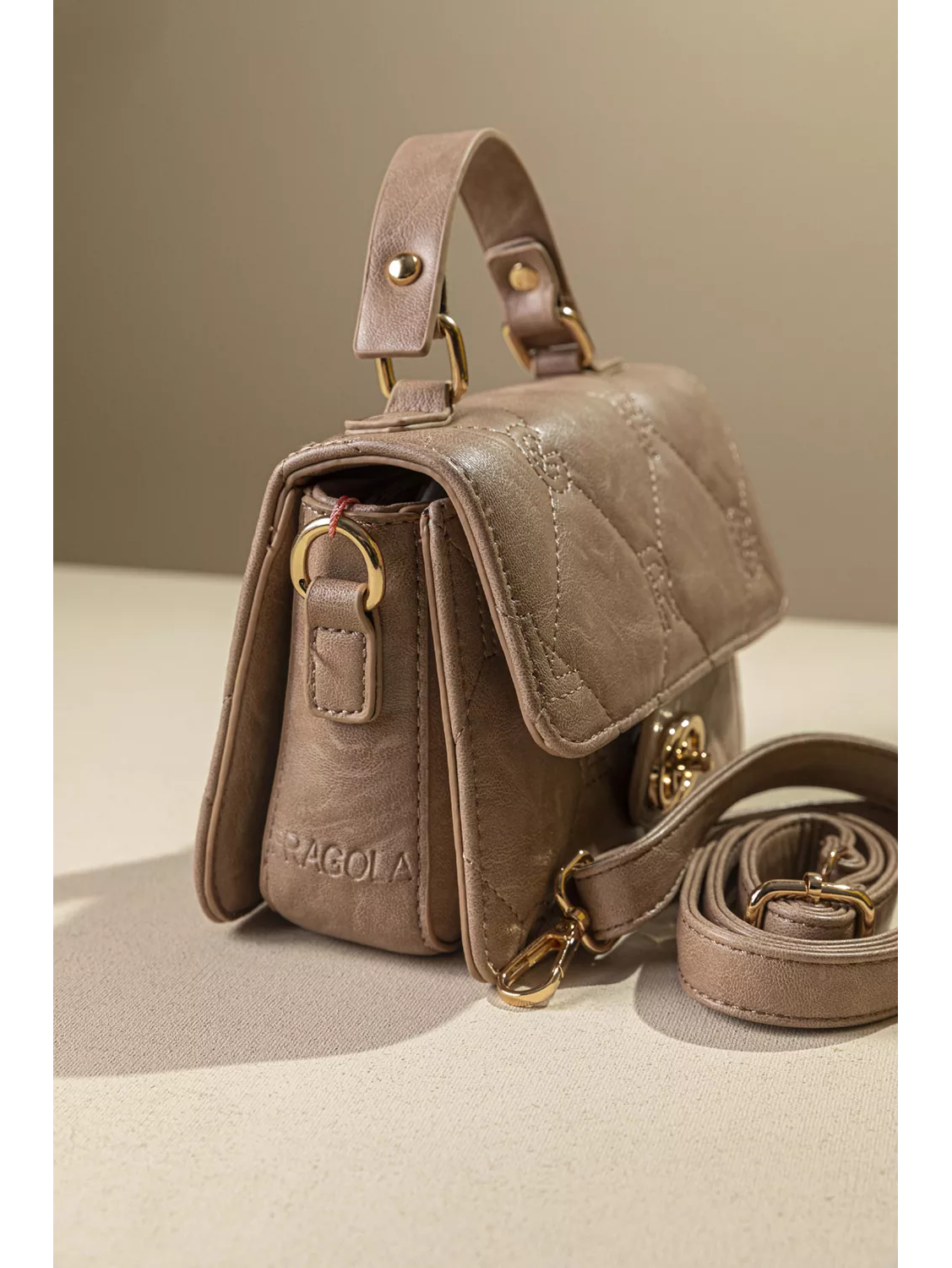 • Τριθέσια κομψή τσάντα χειρός με καπιτονέ υφή και χρυσό εντυπωσιακό κλείσιμο.