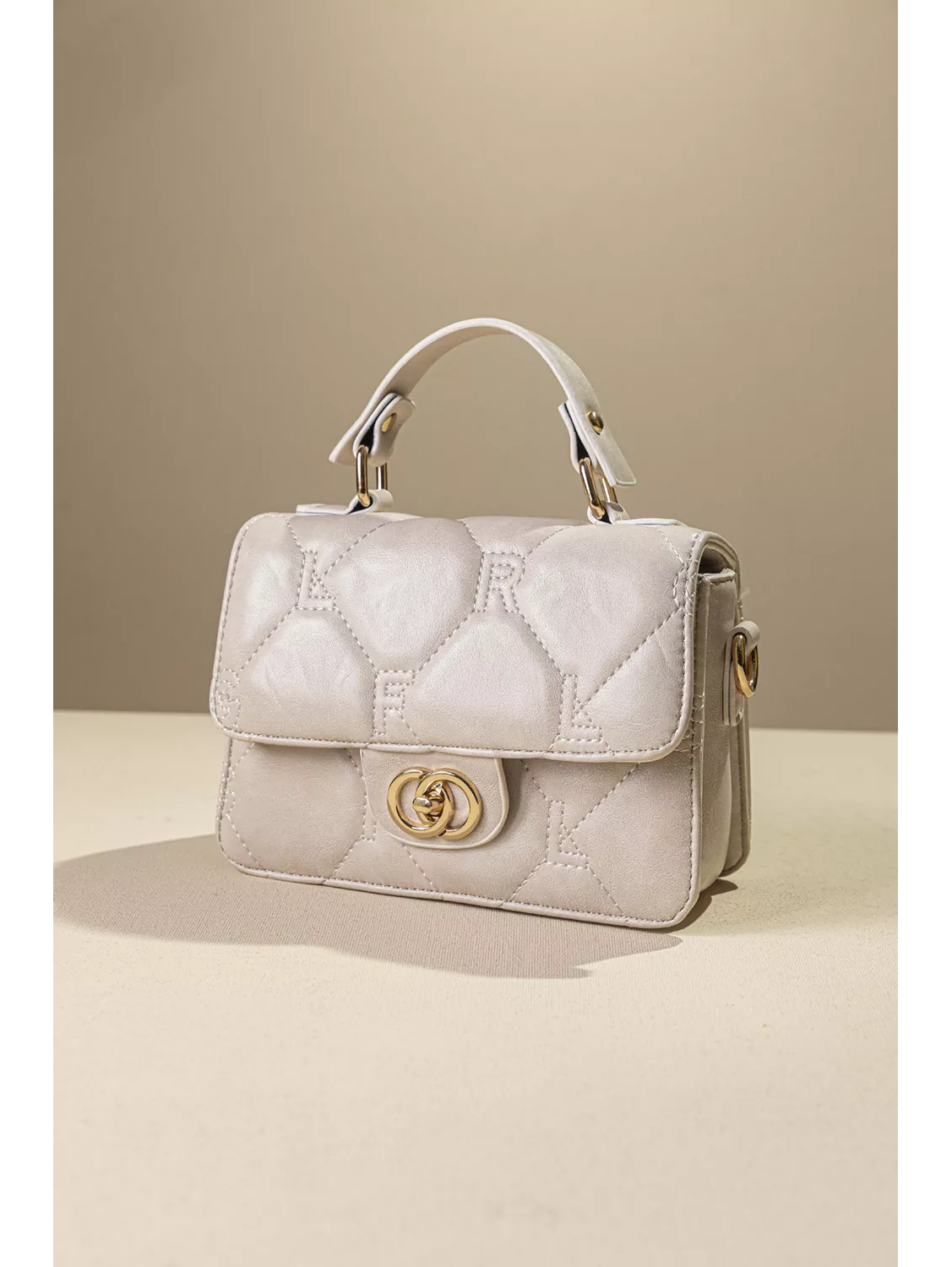 • Τριθέσια κομψή τσάντα χειρός με καπιτονέ υφή και χρυσό εντυπωσιακό κλείσιμο.