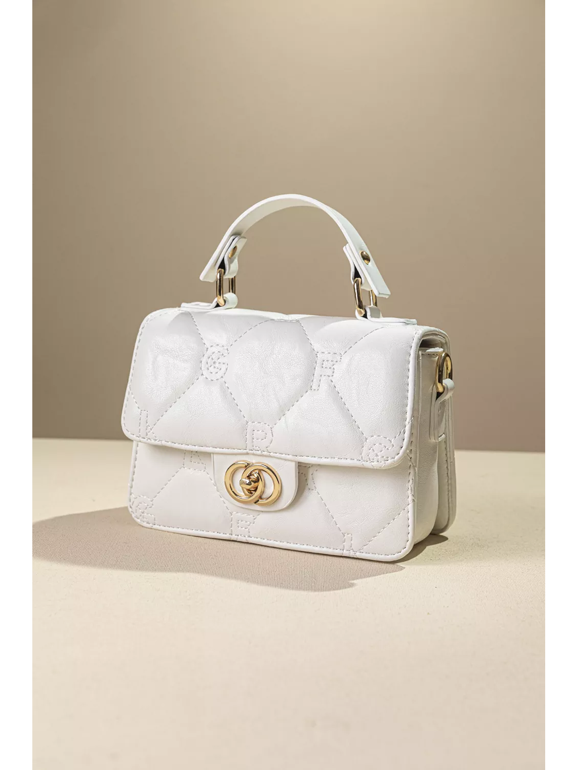 • Τριθέσια κομψή τσάντα χειρός με καπιτονέ υφή και χρυσό εντυπωσιακό κλείσιμο.