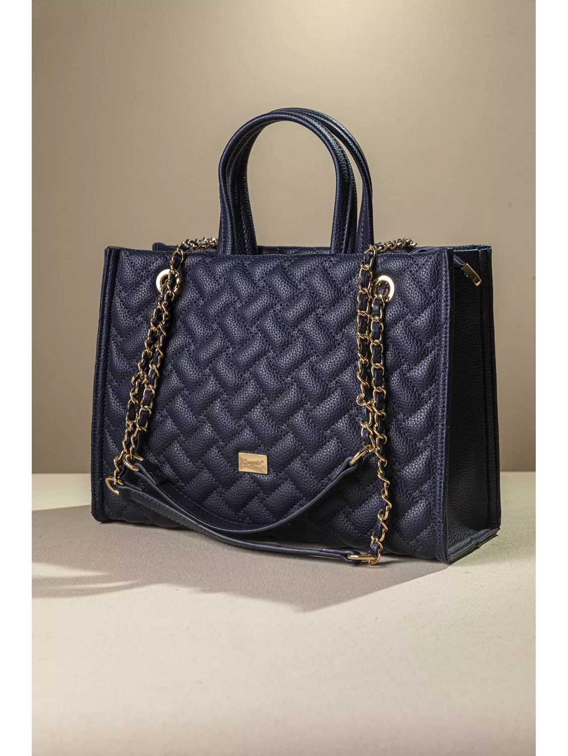 • Μια τσάντα που δείχνει σοβαρή αλλά έχει άποψη, καπιτονέ σχέδιο, μαλακή υφή και χρυσή αλυσίδα που κάνει "θόρυβο". • Κρατιέται στο χέρι ή φοριέται στον ώμο, ή γίνεται χιαστί. Έχει σταθερό σχήμα, φερμουάρ για ασφάλεια και χώρο για όλα τα καθημερινά σου must. Κλασική αλλά όχι βαρετή. Υλικό: Μαλακό συνθετικό δέρμα με puffy καπιτονέ γαζία.