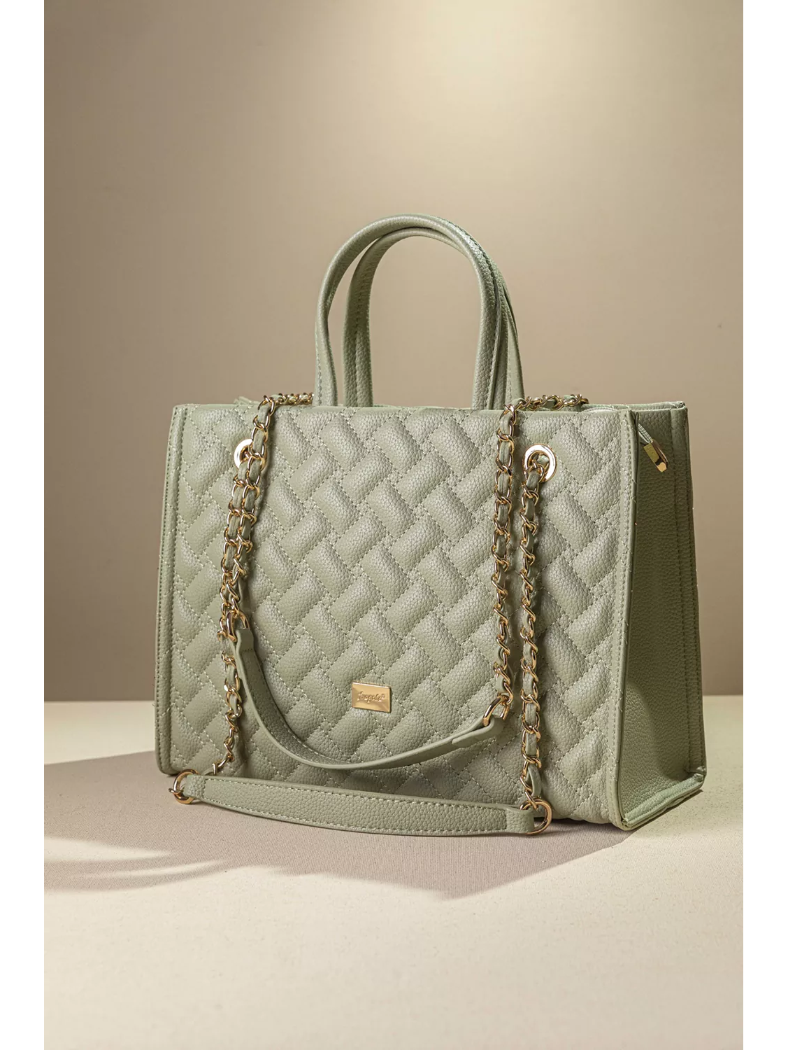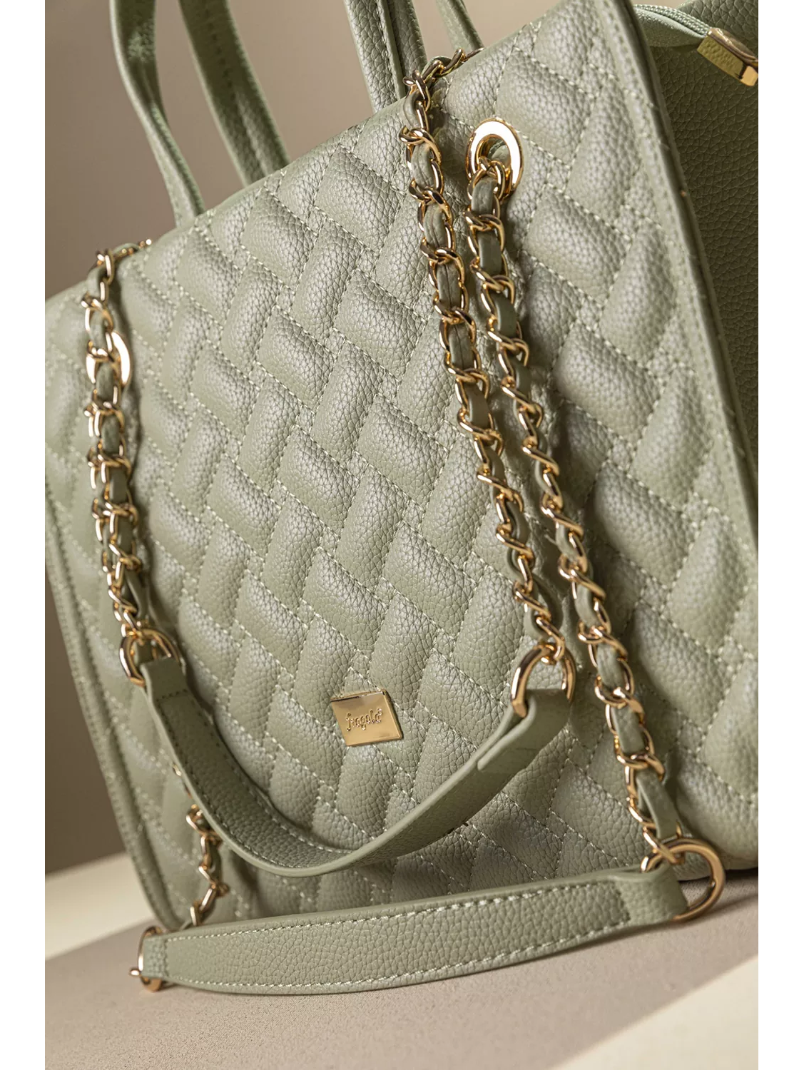• Μια τσάντα που δείχνει σοβαρή αλλά έχει άποψη, καπιτονέ σχέδιο, μαλακή υφή και χρυσή αλυσίδα που κάνει "θόρυβο". • Κρατιέται στο χέρι ή φοριέται στον ώμο, ή γίνεται χιαστί. Έχει σταθερό σχήμα, φερμουάρ για ασφάλεια και χώρο για όλα τα καθημερινά σου must. Κλασική αλλά όχι βαρετή. Υλικό: Μαλακό συνθετικό δέρμα με puffy καπιτονέ γαζία.