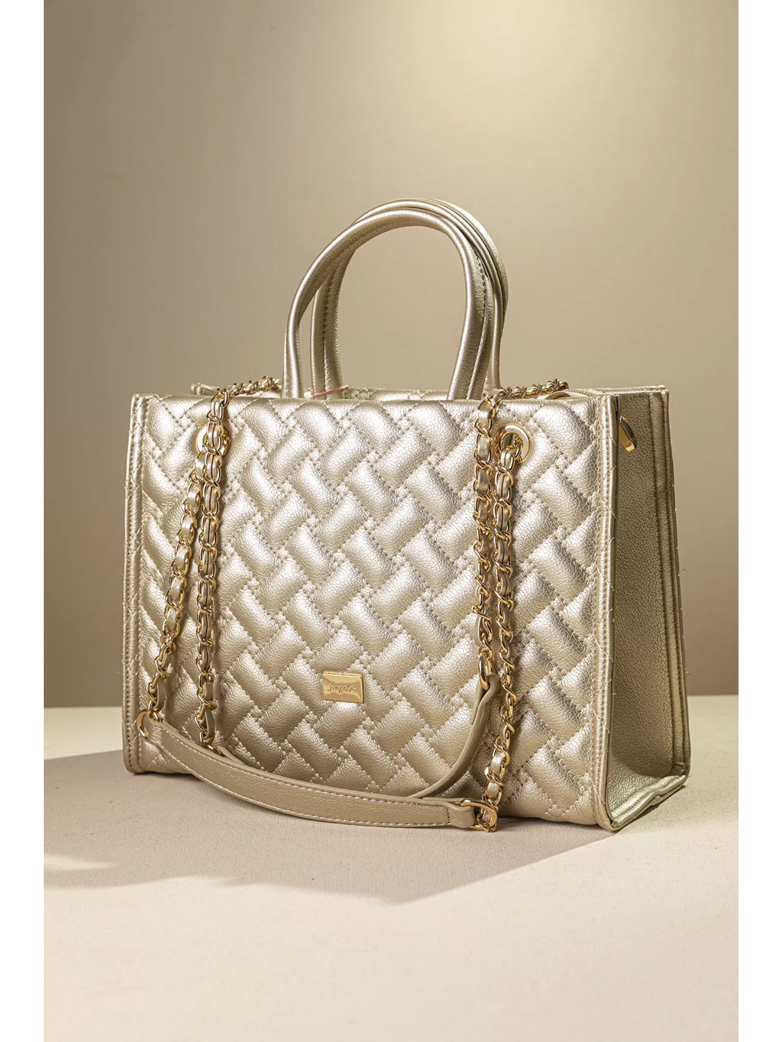 • Μια τσάντα που δείχνει σοβαρή αλλά έχει άποψη, καπιτονέ σχέδιο, μαλακή υφή και χρυσή αλυσίδα που κάνει "θόρυβο".
