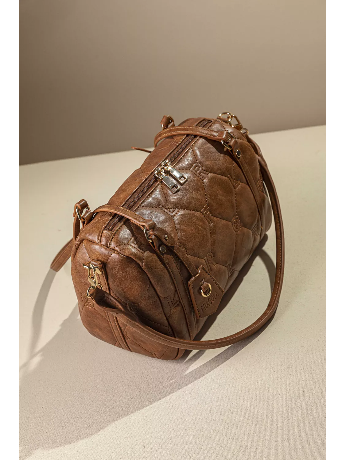 • Κατασκευασμένη από υψηλής ποιότητας μαλακό συνθετικό δέρμα με γαζιά που απεικονίζουν τα γράμματα της εταιρείας. • Διαθέτει ρυθμιζόμενα χέρια για άνετη εφαρμογή και ασφαλές κλείσιμο με φερμουάρ. • Επίσης extra στρογγυλό χέρι για κράτημα στον ώμο ή στο χέρι. Ο ευρύχωρος εσωτερικός χώρος με τα τσεπάκια του σας δίνει την δυνατότητα να οργανώσετε άνετα τα προσωπικά σας αντικείμενα, ενώ οι διακριτικές μεταλλικές λεπτομέρειες προσθέτουν μια διαχρονική αισθητική. • Ιδανική για εργασία, έξοδο ή ταξίδι.
