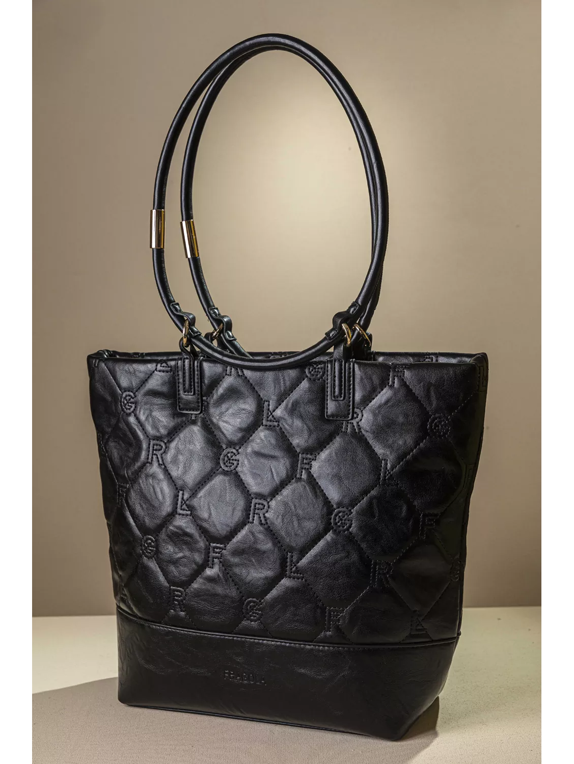 • Κομψή γυναικεία τσάντα με καπιτονέ υφή και διακριτικό μοτίβο του λογοτύπου της εταιρείας μας. • Διαθέτει σταθερή δομή άνετα χέρια με μεταλλικές λεπτομέρειες σε χρυσό τόνο και minimal αισθητική που ταιριάζει από το πρωί έως το βράδυ. • Τα χέρια μετατρέπονται εύκολα από κοντό κράτημα σε κράτημα στον ώμο με μια απλή κίνηση. Υλικό: Μαλακό συνθετικό δέρμα με παλαιωμένη όψη και καπιτονέ γαζιά που απεικονίζουν τα γράμματα της εταιρείας.
