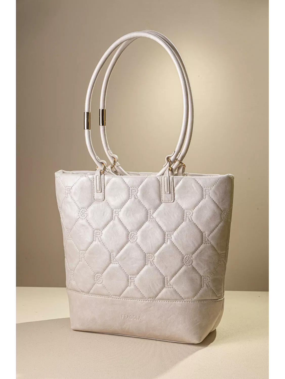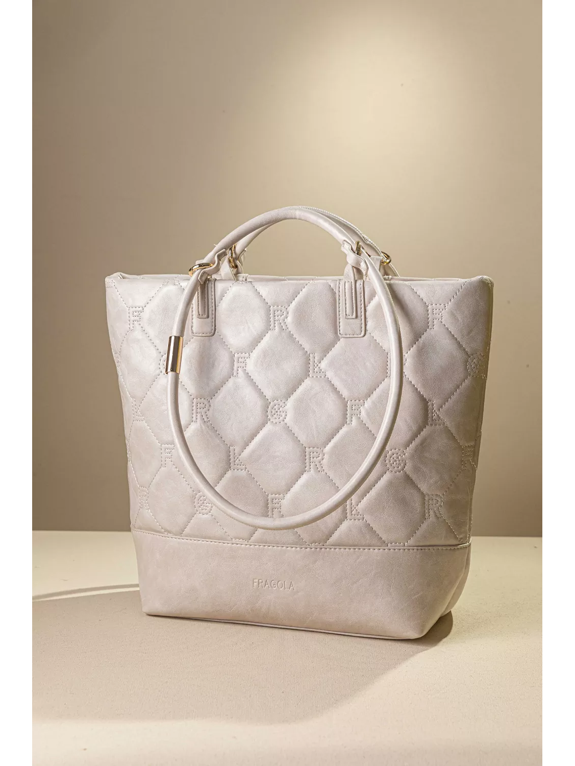 • Κομψή γυναικεία τσάντα με καπιτονέ υφή και διακριτικό μοτίβο του λογοτύπου της εταιρείας μας.
