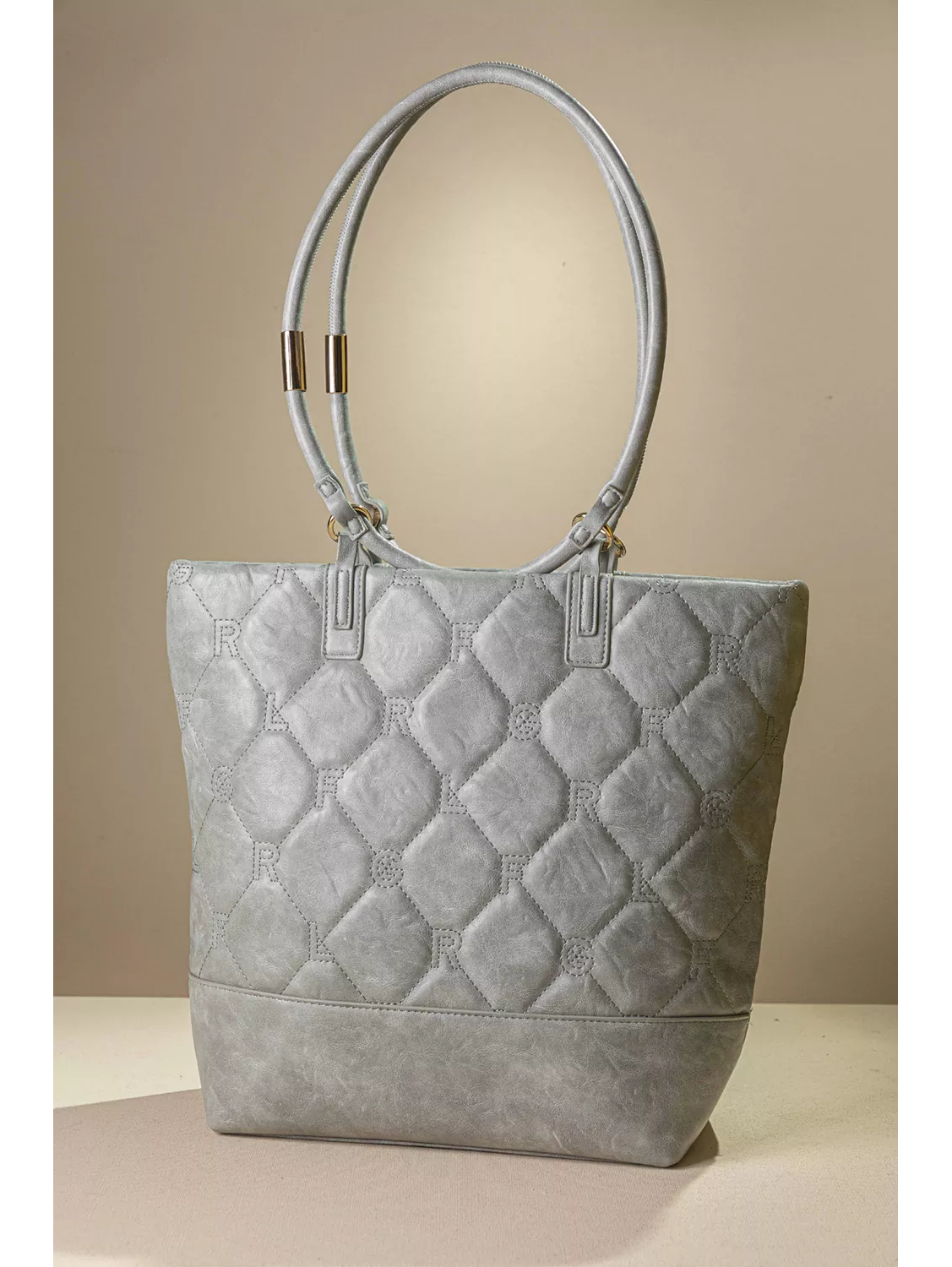 • Κομψή γυναικεία τσάντα με καπιτονέ υφή και διακριτικό μοτίβο του λογοτύπου της εταιρείας μας.