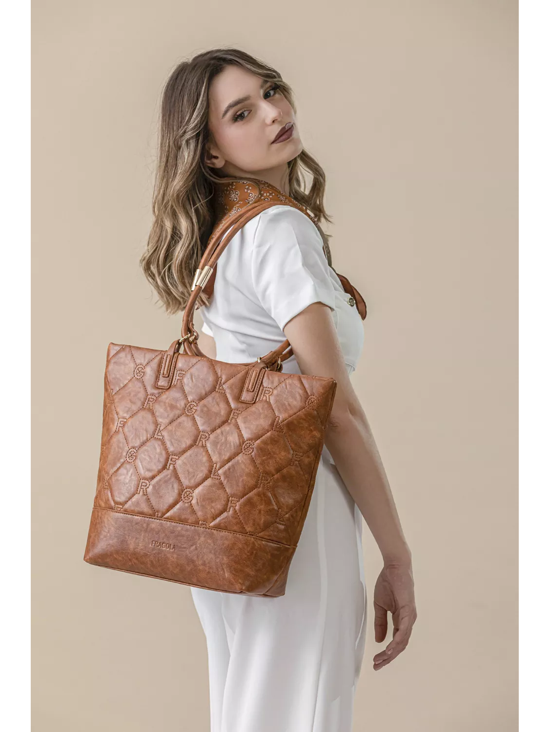 • Κομψή γυναικεία τσάντα με καπιτονέ υφή και διακριτικό μοτίβο του λογοτύπου της εταιρείας μας.