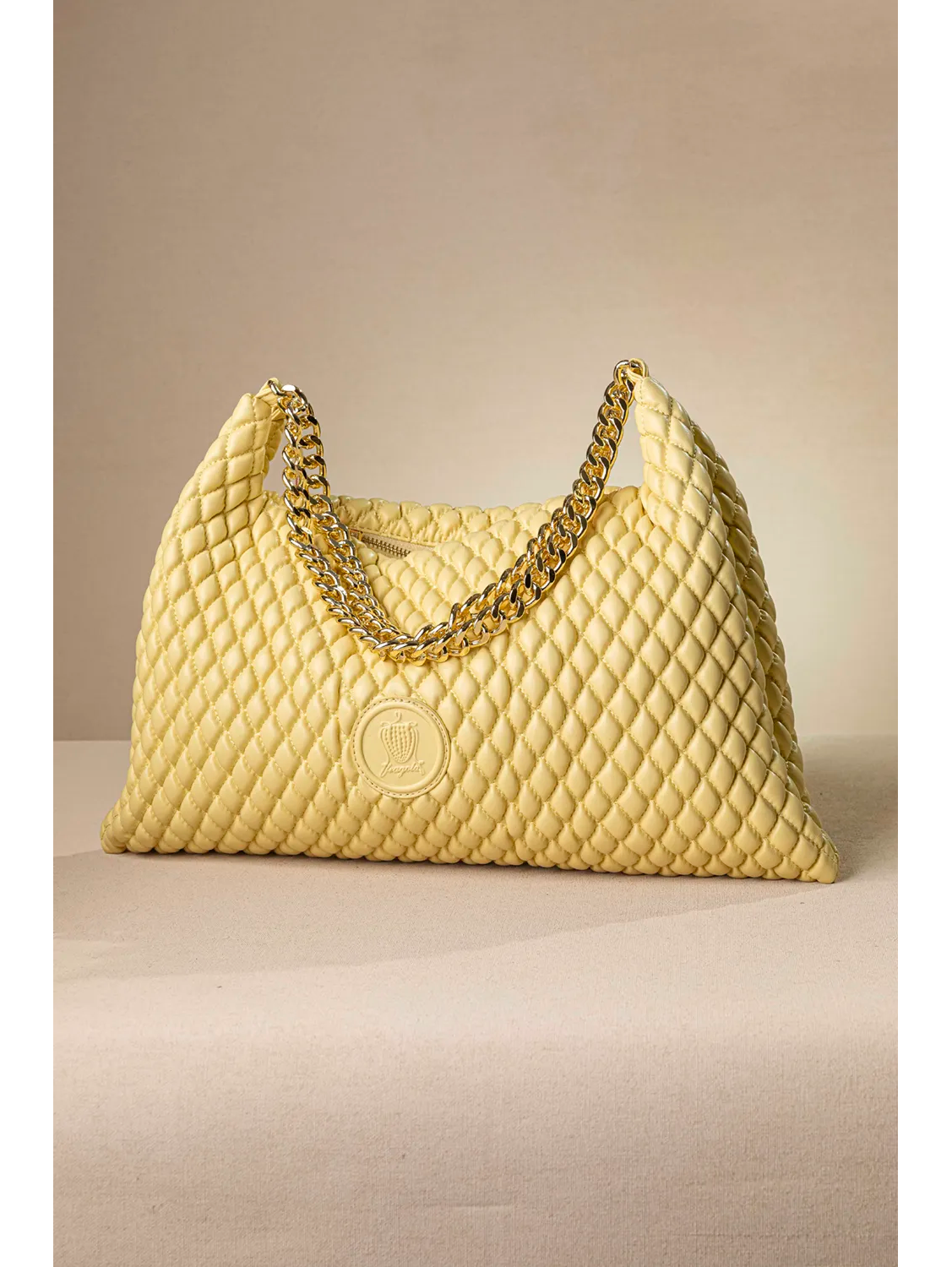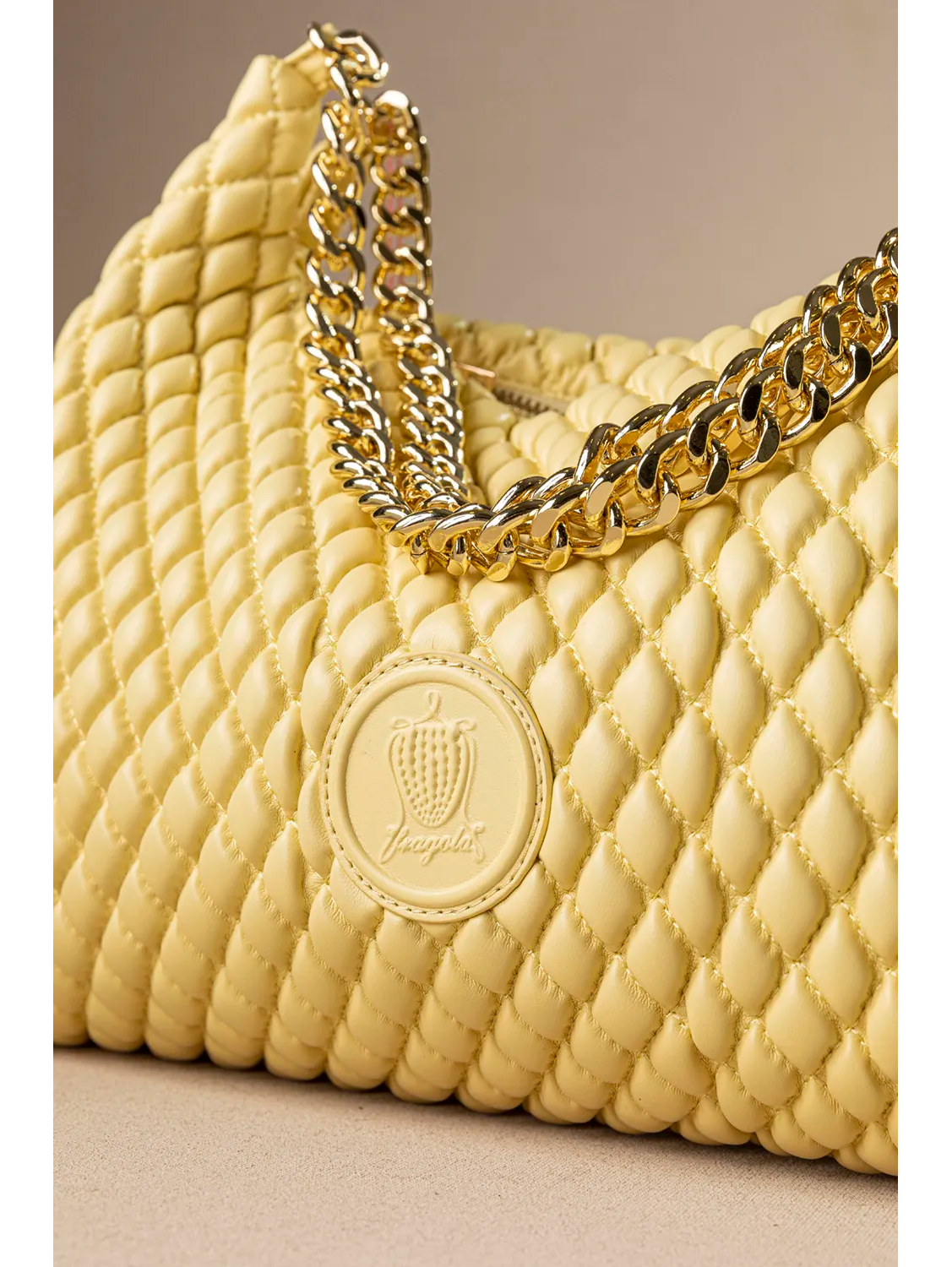 Μεσαίου μεγέθους τσάντα ώμου για να ολοκληρώσετε το ντύσιμο σας, ιδανική για όλες τις ώρες την ημέρας! Η διπλή τροχισμένη αλυσίδα της δίνει ιδιαίτερο στιλ! Στο εσωτερικό της θα βρείτε τα απαραίτητα μικρά τσεπάκια, ένα με φερμουάρ και ένα χωρίς για αποθήκευση μικροαντικειμένων.