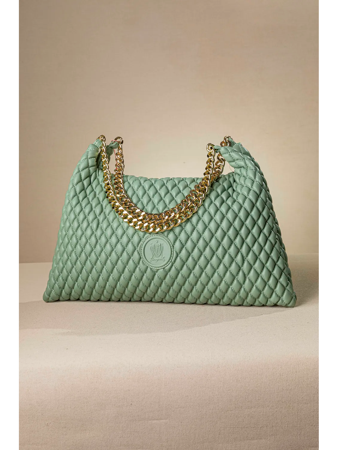Μεσαίου μεγέθους τσάντα ώμου για να ολοκληρώσετε το ντύσιμο σας, ιδανική για όλες τις ώρες την ημέρας! Η διπλή τροχισμένη αλυσίδα της δίνει ιδιαίτερο στιλ! Στο εσωτερικό της θα βρείτε τα απαραίτητα μικρά τσεπάκια, ένα με φερμουάρ και ένα χωρίς για αποθήκευση μικροαντικειμένων.