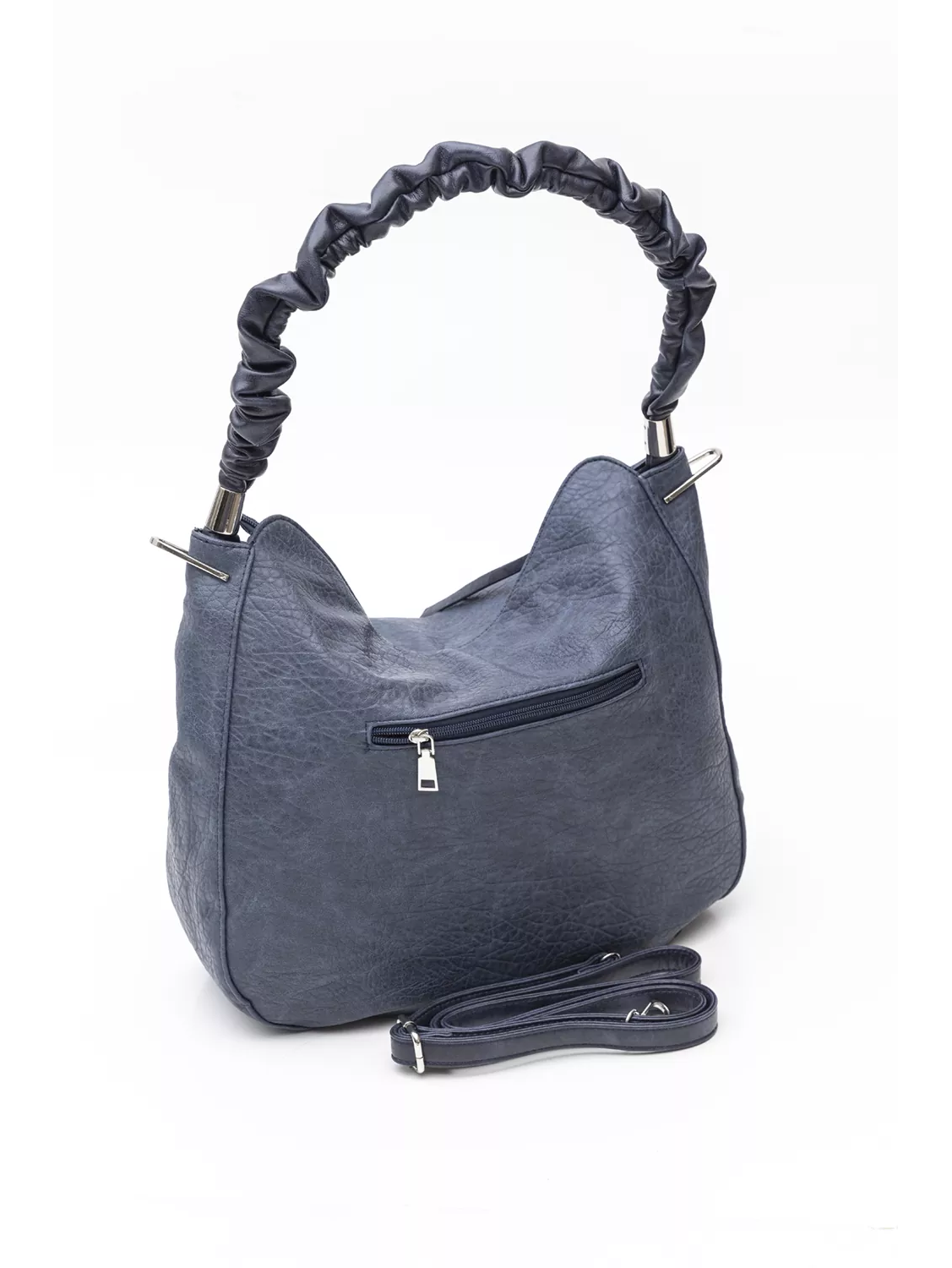 Μεγάλη μαλακή τσάντα που κλείνει με φερμουάρ κατάλληλη για όλη τη μέρα. Στο εσωτερικό της υπάρχει διαχωριστικό με φερμουάρ, το κλασικό τσεπάκι με φερμουάρ και όλα τα βοηθητικά τσεπάκια για τα μικροαντικείμενα σας. Στο πίσω μέρος της υπάρχει τσέπη με φερμουάρ. Η τσάντα διαθέτει δεξιά και αριστερά μεταλλικά εξαρτήματα τα οποία λειτουργούν σαν διακοσμήτικά αλλά και για να εφαρμοστεί το μακρύ χέρι της και να μετατραπεί σε χιαστί. Το χέρι για τον ώμο είναι από μαλακή δερματίνη και είναι πλισσαρισμένο σε χοντρό κορδόνι.