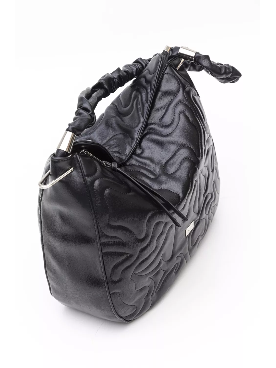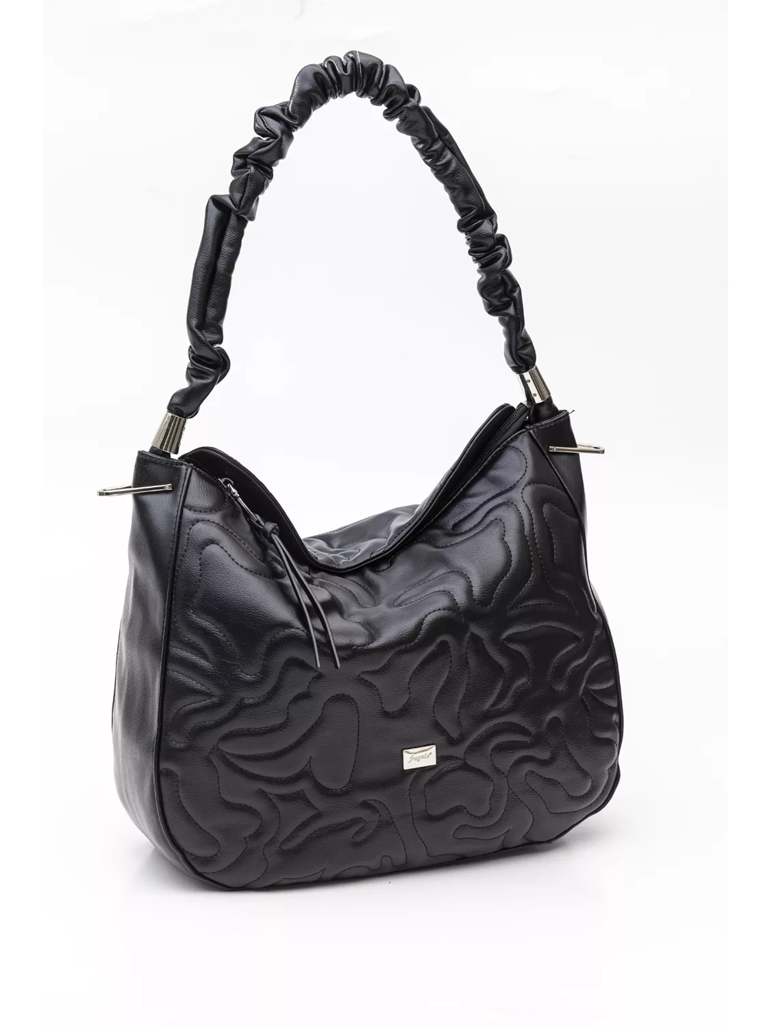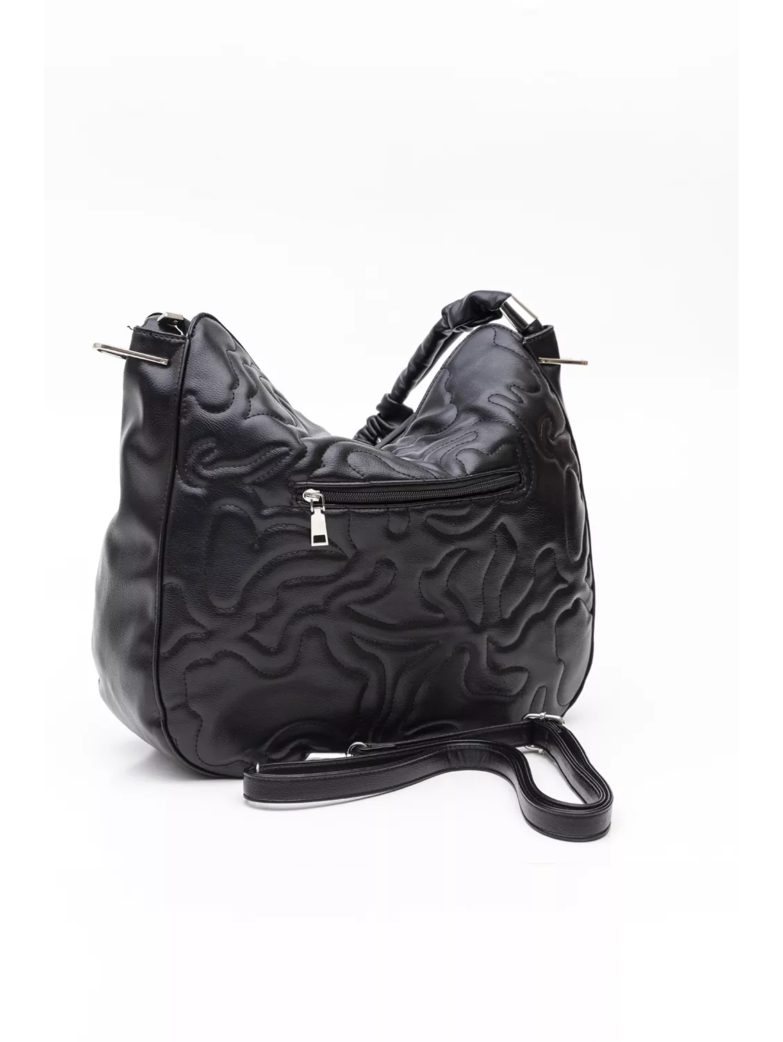 Μεγάλη μαλακή τσάντα που κλείνει με φερμουάρ κατάλληλη για όλη τη μέρα. Στο εσωτερικό της υπάρχει διαχωριστικό με φερμουάρ, το κλασικό τσεπάκι με φερμουάρ και όλα τα βοηθητικά τσεπάκια για τα μικροαντικείμενα σας. Στο πίσω μέρος της υπάρχει τσέπη με φερμουάρ. Η τσάντα διαθέτει δεξιά και αριστερά μεταλλικά εξαρτήματα τα οποία λειτουργούν σαν διακοσμήτικά αλλά και για να εφαρμοστεί το μακρύ χέρι της και να μετατραπεί σε χιαστί. Το χέρι για τον ώμο είναι από μαλακή δερματίνη και είναι πλισσαρισμένο σε χοντρό κορδόνι.