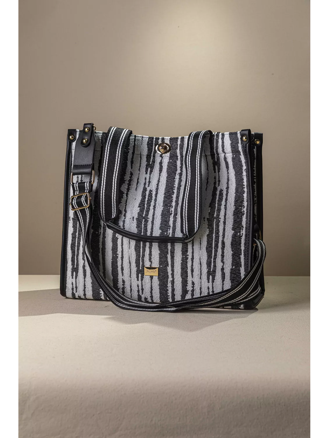 • Υφασμάτινη τσάντα με εντυπωσιακό μοτίβο και μοντέρνες λεπτομέρειες που ξεχωρίζουν.