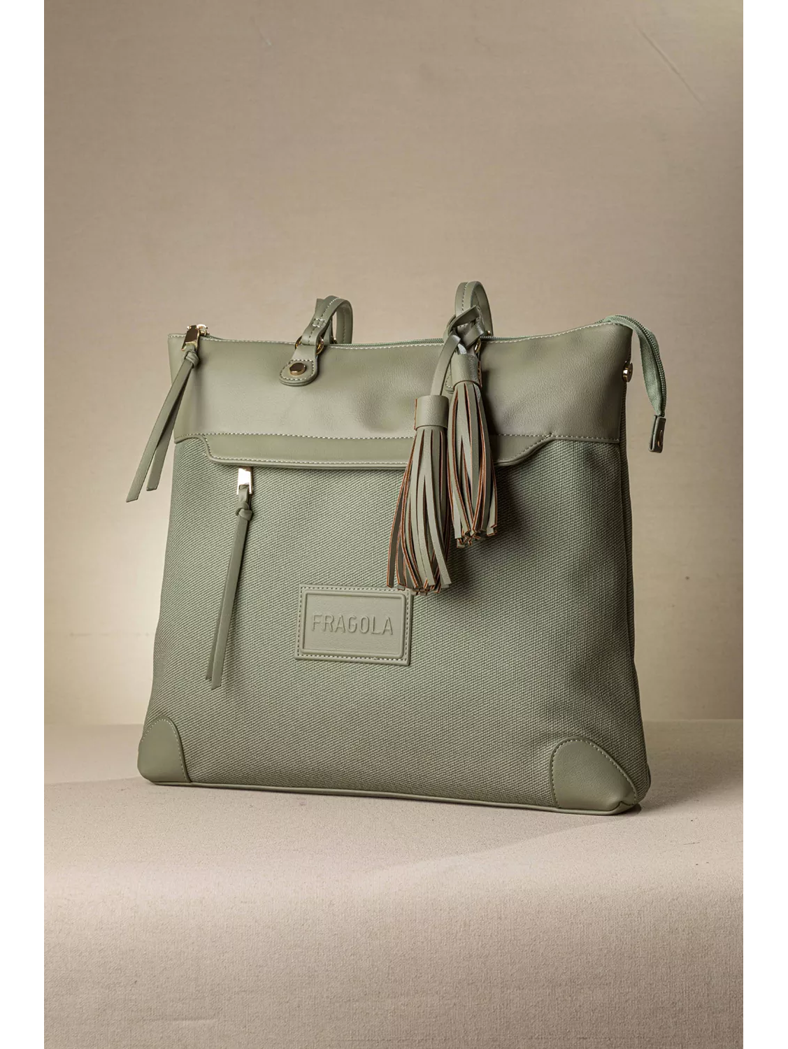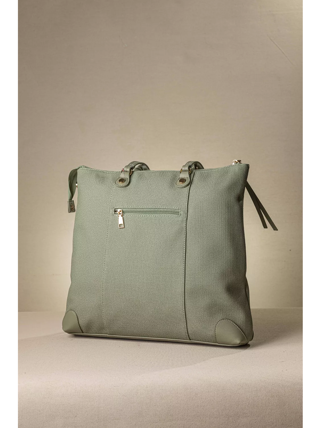 Μεγάλη τσάντα ώμου ! Διαθέτει στο μπροστινό εξωτερικό μέρος μια τσέπη με φερμουάρ και μια ακόμα στο εξωτερικό πίσω μέρος της. Ενιαίος μεγάλος χώρος στο εσωτερικό της και τα απαραίτητα μικρά τσεπάκια, ένα με φερμουάρ και ένα χωρίς για αποθήκευση μικροαντικειμένων. Υλικό: Συνθετικό δέρμα με υφή υφάσματος