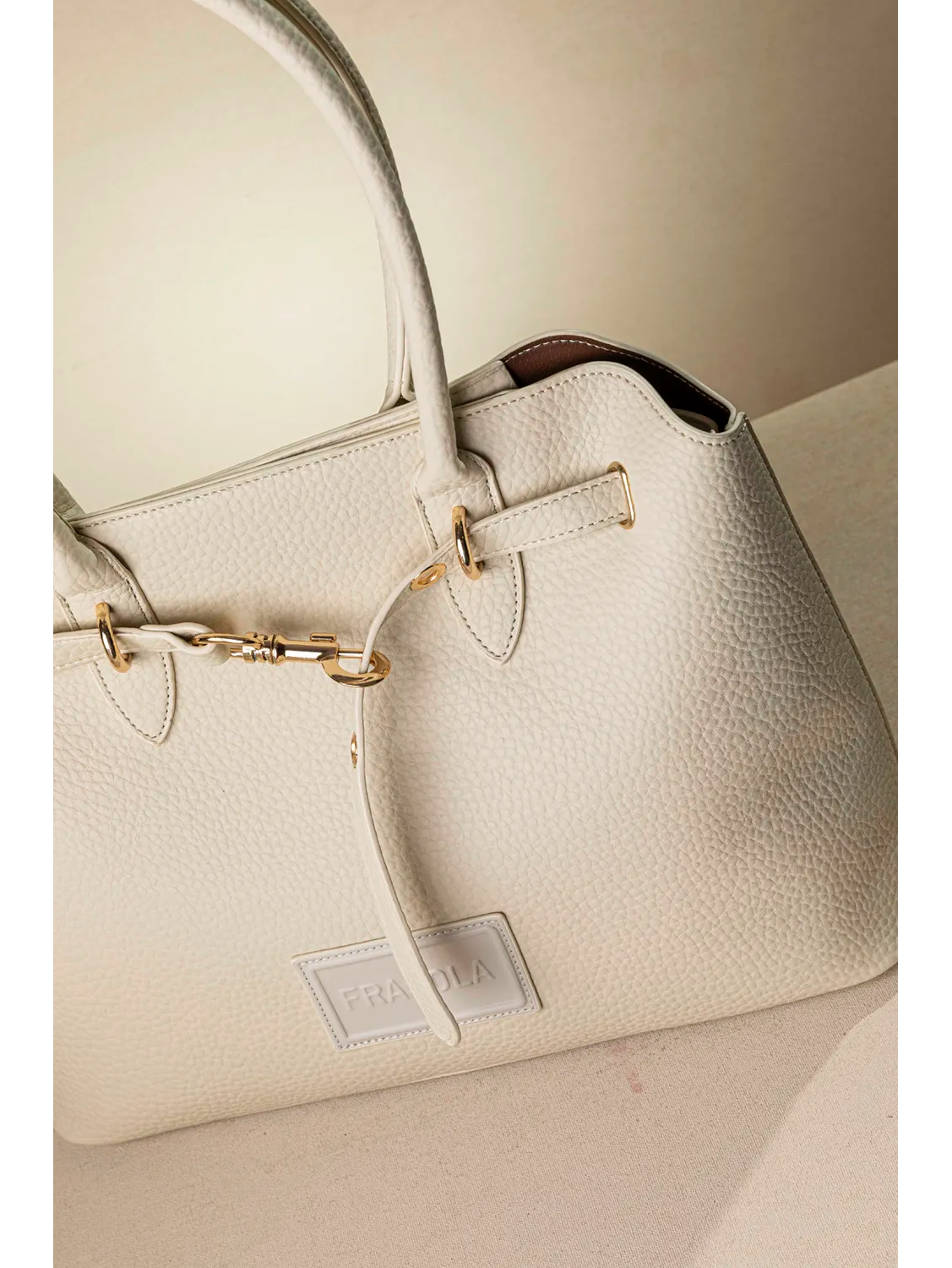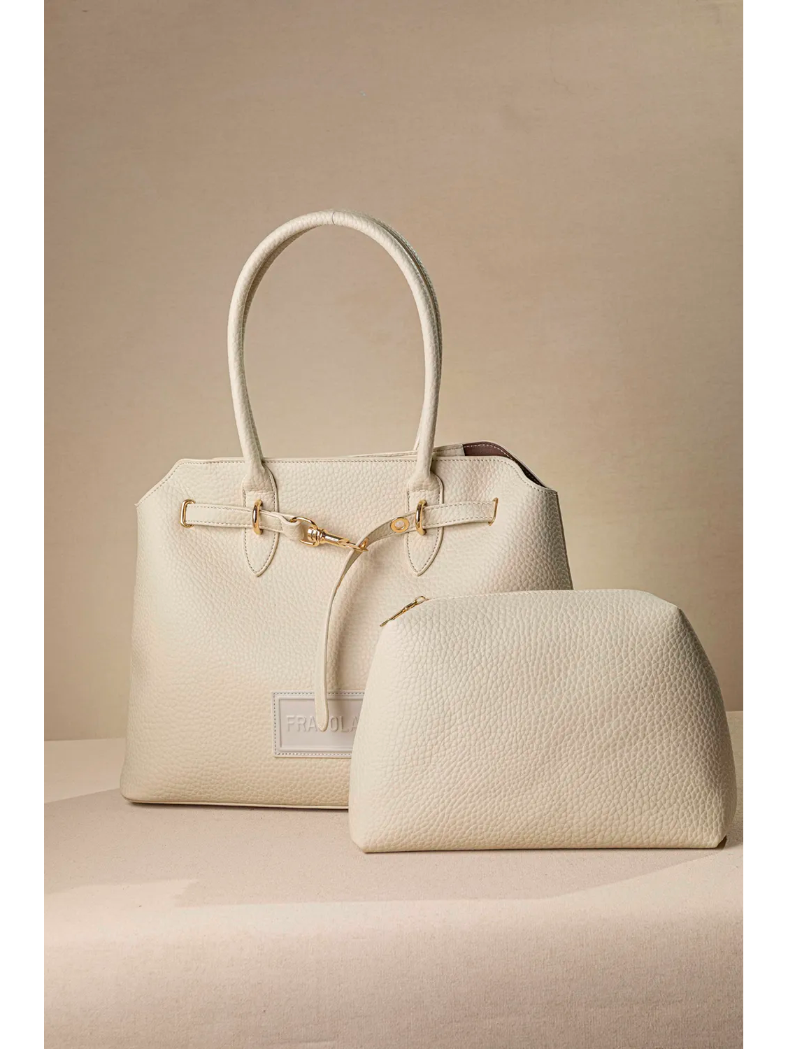 Τετράγωνη τσάντα ώμου, μεγάλης χωρητικότητας, η κατάλληλη επιλογή για όλη την ημέρα. Η τσάντα κλείνει με μαγνητικό μπουτόν. Περιλαμβάνει ευρύχωρο εσωτερικό τσαντάκι που ασφαλίζει με φερμουάρ. Εντυπωσιακό μεταλλικό κούμπωμα στο μπροστινό της μέρος της κάνουν ακόμα πιο ιδιαίτερη.