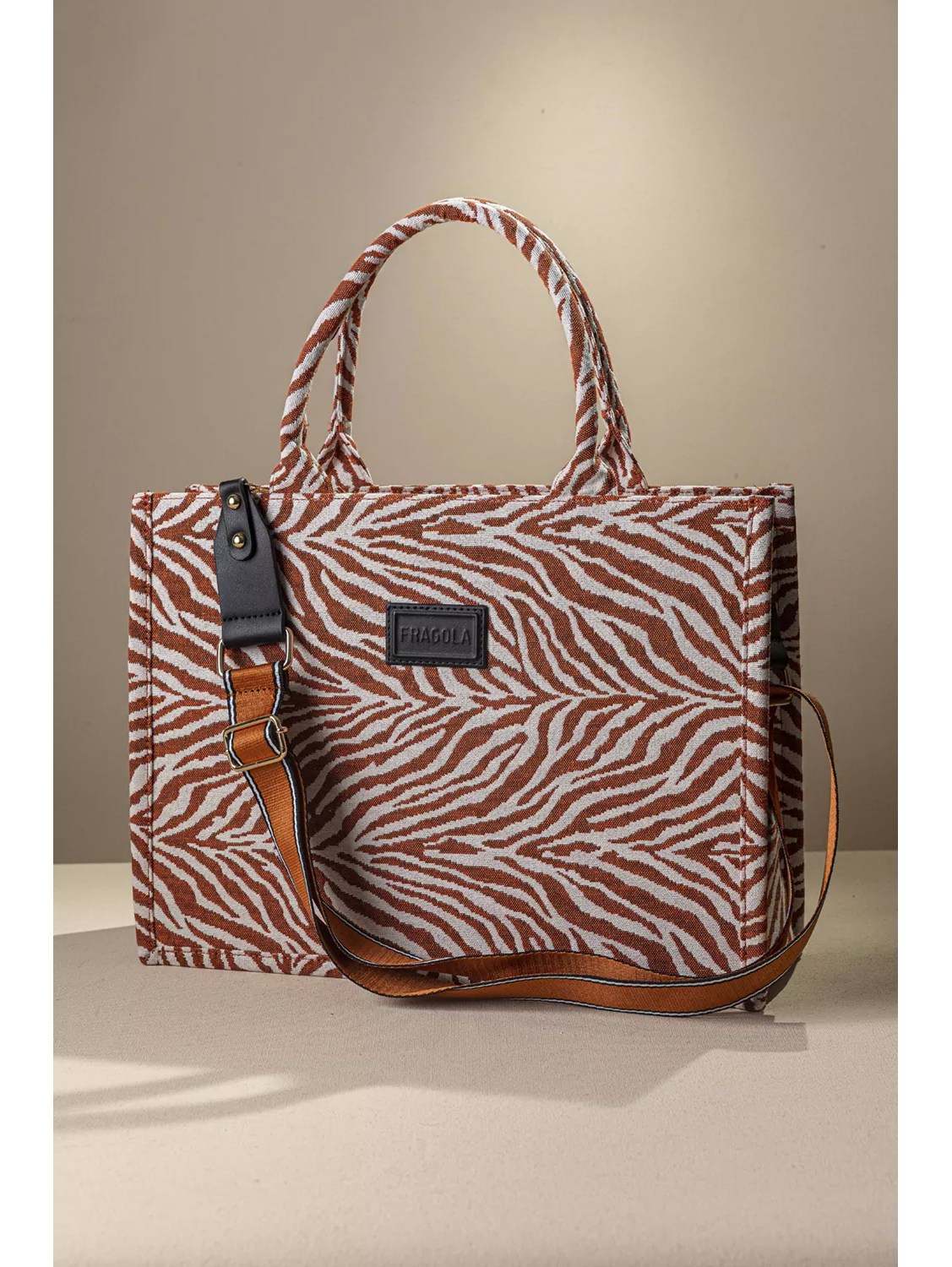• Κατασκευασμένη από υψηλής ποιότητας υφαντό ύφασμα, προσφέρει ανθεκτικότητα και πολυτελή υφή. • Διαθέτει στιβαρά κοντά χέρια για κράτημα στο χέρι καθώς και αποσπώμενο ρυθμιζόμενο ιμάντα ώμου, επιτρέποντας να φορεθεί άνετα και ως χιαστί. • Οι μεταλλικές λεπτομέρειες σε χρυσό τόνο. προσφέρουν κομψότητα ενώ το λογότυπο Fragola στο μπροστινό μέρος, υπογραμμίζει την ταυτότητα που Brand. • Πρακτικό για τα καθημερινά must σας που λόγω του μεγάλου μεγέθους της είναι ιδανική για κράτημα απο το πρωί έως το απόγευμα, κλείνει με φερμουάρ. Υλικο: Υφαντό πανί σε εντυπωσιακά animal prints, γεωμετρικά σχήματα, μοτίβα απο την φύση, και tranditional print.