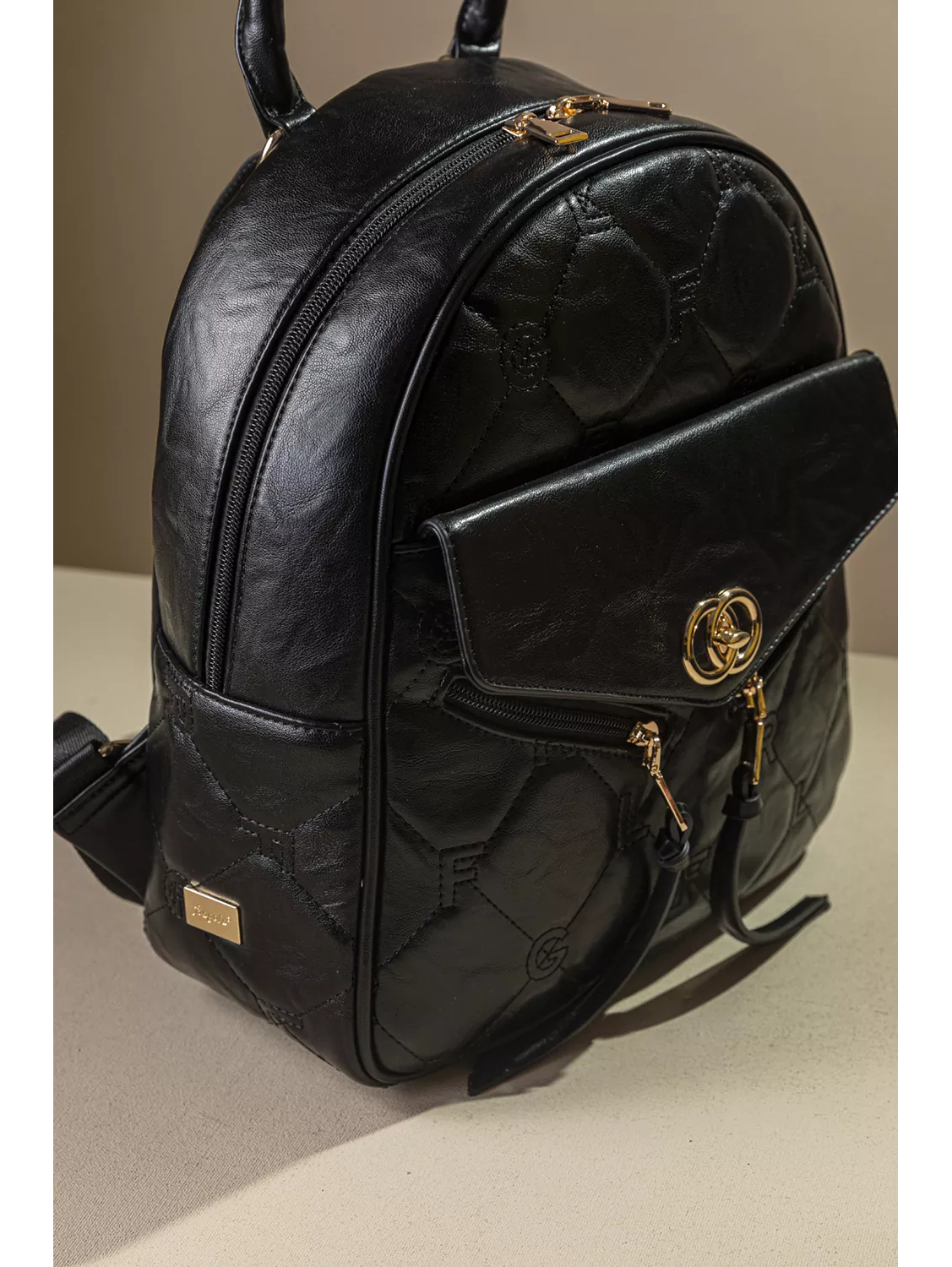 • Μεγάλο μαλακό backpack για κάθε μέρα! Ένας ενιαίος χώρος και όλα τα απαραίτητα τσεπάκια με και χωρίς φερμουάρ, για τα μικροαντικείμενά σας! • Μπροστά εξωτερικά δύο μικρά τσεπάκια με φερμουάρ και μια μεγαλύτερη θήκη που κλείνει με καπάκι και ιδιαίτερο χρυσό εντυπωσιακό εξάρτημα. • Στο πίσω εξωτερικό μέρος της τσάντας έξτρα τσέπη με φερμουάρ. Υλικό: Μαλακό συνθετικό δέρμα με παλαιομένη όψη και καπιτονέ γαζιά που απεικονίζουν τα γράμματα της εταιρείας.