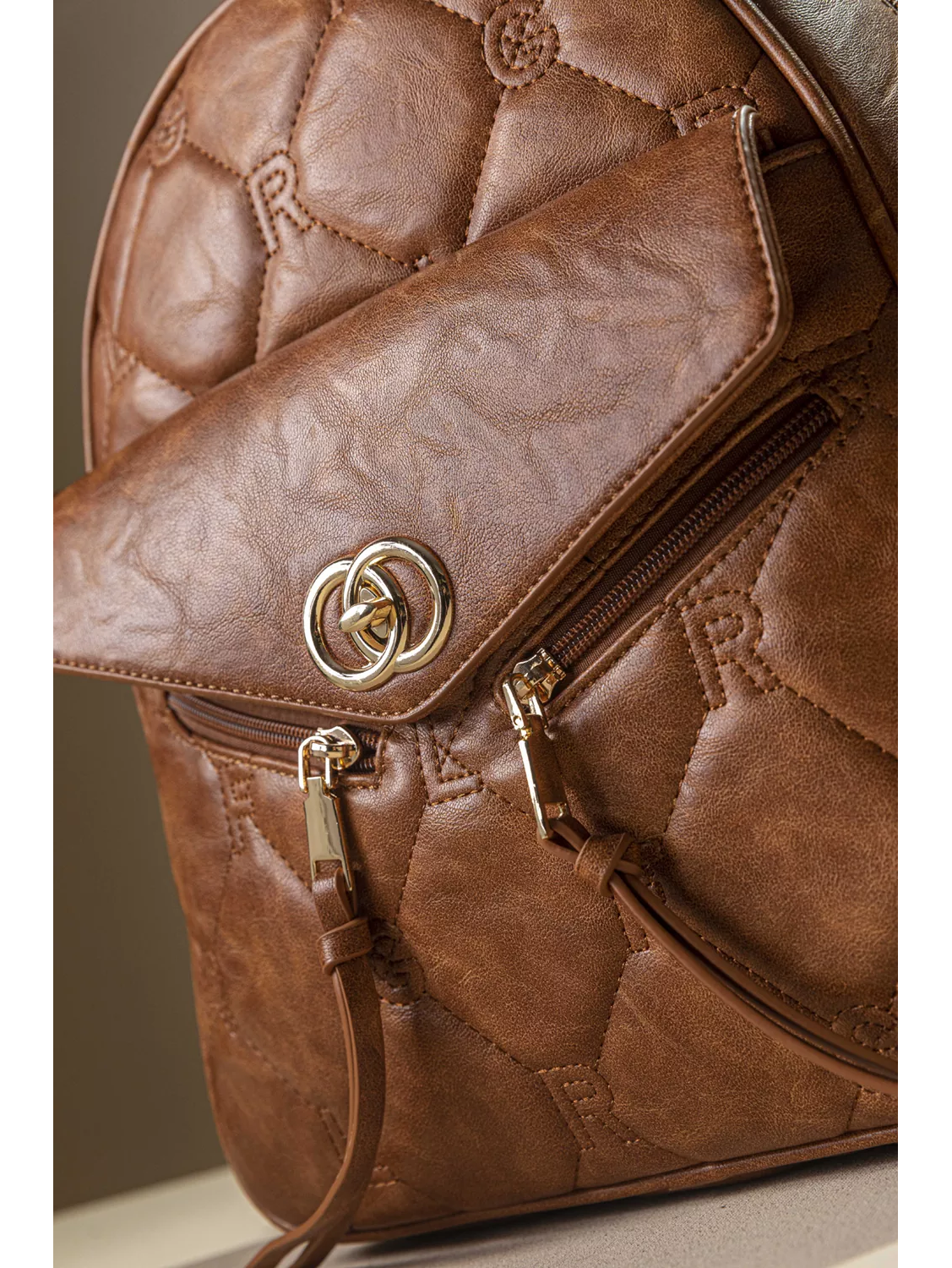 • Μεγάλο μαλακό backpack για κάθε μέρα! Ένας ενιαίος χώρος και όλα τα απαραίτητα τσεπάκια με και χωρίς φερμουάρ, για τα μικροαντικείμενά σας! • Μπροστά εξωτερικά δύο μικρά τσεπάκια με φερμουάρ και μια μεγαλύτερη θήκη που κλείνει με καπάκι και ιδιαίτερο χρυσό εντυπωσιακό εξάρτημα. • Στο πίσω εξωτερικό μέρος της τσάντας έξτρα τσέπη με φερμουάρ. Υλικό: Μαλακό συνθετικό δέρμα με παλαιομένη όψη και καπιτονέ γαζιά που απεικονίζουν τα γράμματα της εταιρείας.