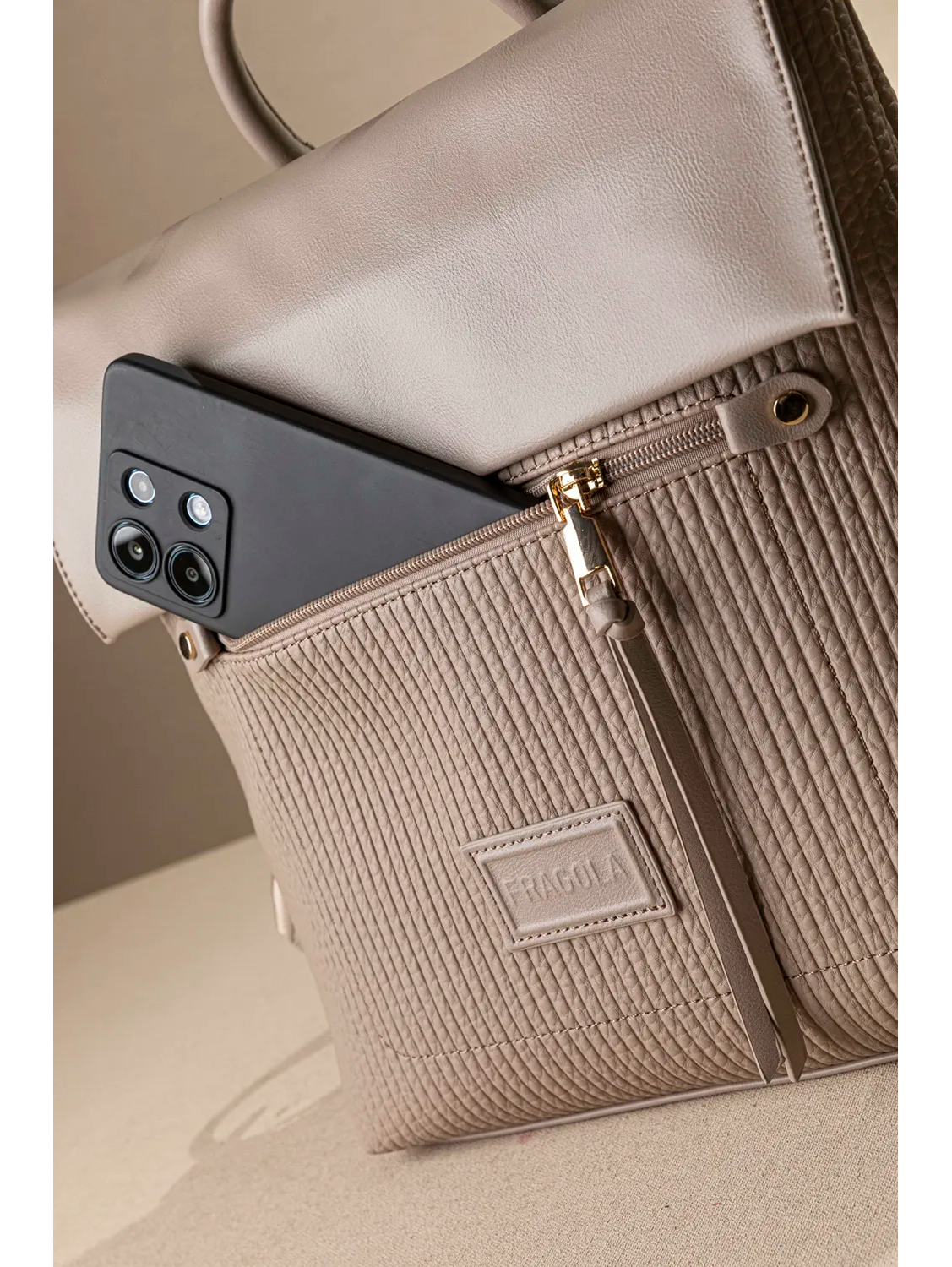 Μαλακό μεγάλο Backpack που κλείνει με καπάκι με δυο μαγνητικά buttons. Η τσάντα κλείνει με φερμουάρ για ασφάλεια, κάτω από το καπάκι .Ενιαίος χώρος με πολλές τσέπες. Μεγάλη χρηστική τσέπη με φερμουάρ στο μπροστινό μέρος και βοηθητική τσέπη με φερμουάρ στο πίσω μέρος. Τα χεράκια των ώμων είναι δερματίνη με ιμάντα για μεγαλύτερη άνεση.