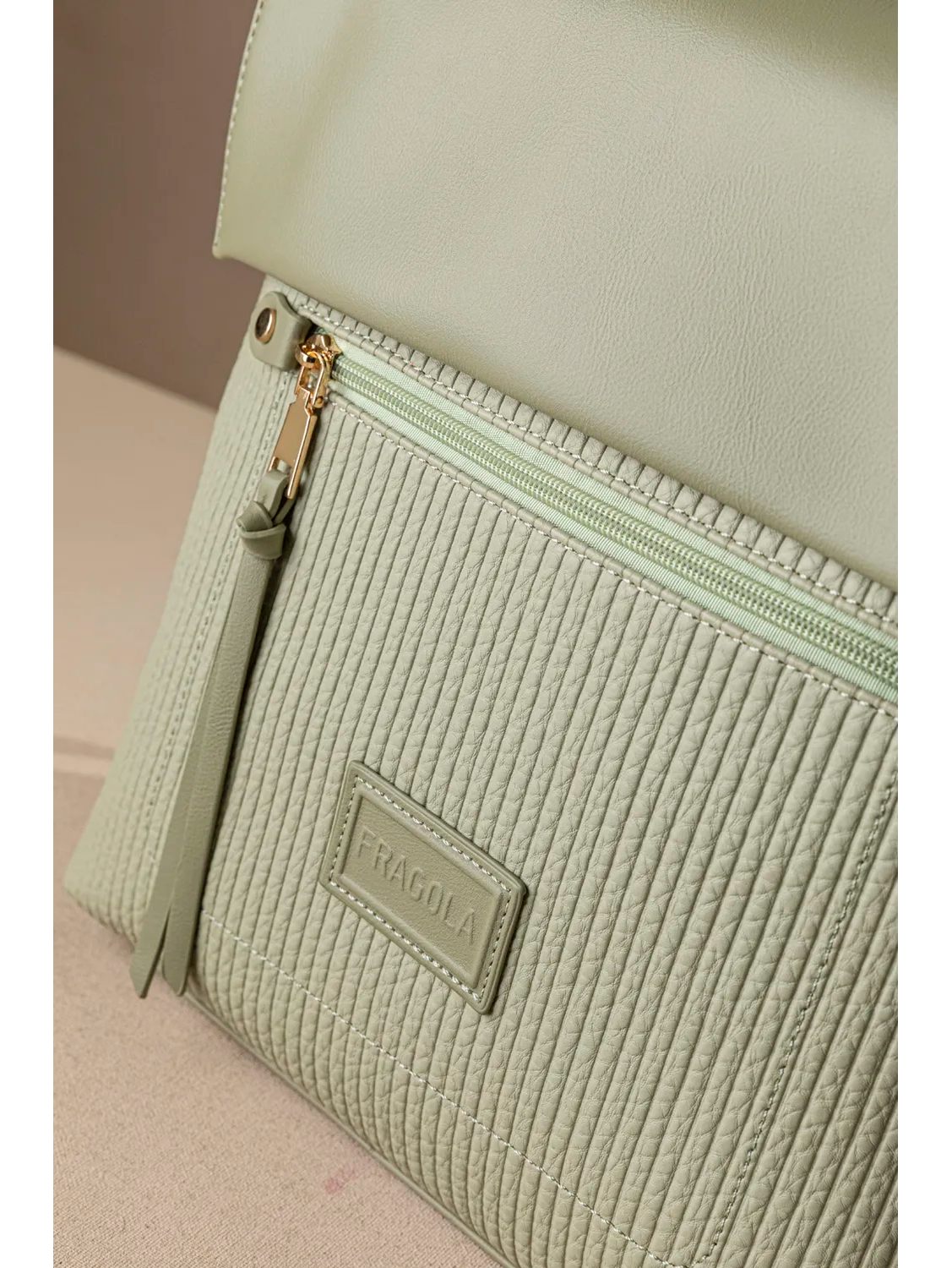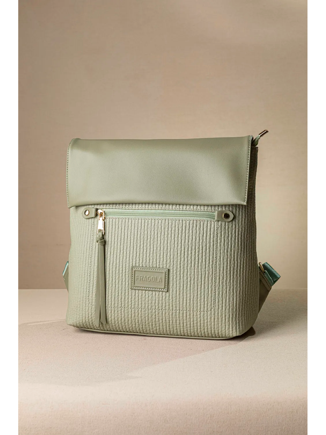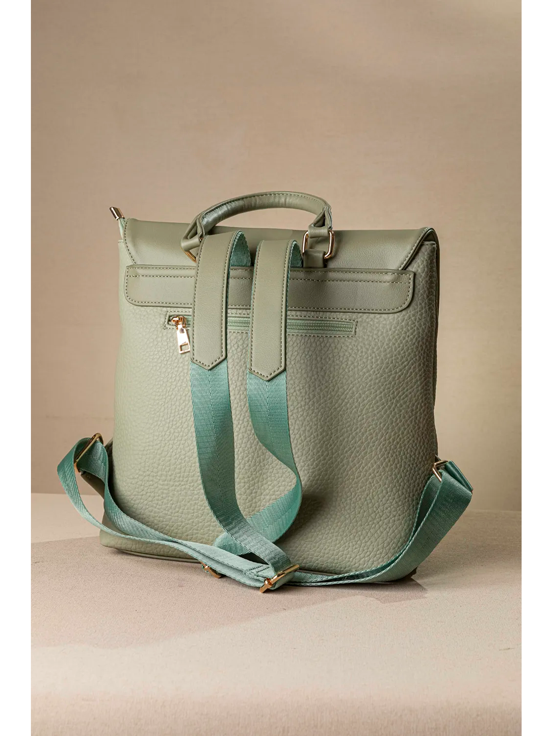 Μαλακό μεγάλο Backpack που κλείνει με καπάκι με δυο μαγνητικά buttons. Η τσάντα κλείνει με φερμουάρ για ασφάλεια, κάτω από το καπάκι .Ενιαίος χώρος με πολλές τσέπες. Μεγάλη χρηστική τσέπη με φερμουάρ στο μπροστινό μέρος και βοηθητική τσέπη με φερμουάρ στο πίσω μέρος. Τα χεράκια των ώμων είναι δερματίνη με ιμάντα για μεγαλύτερη άνεση.