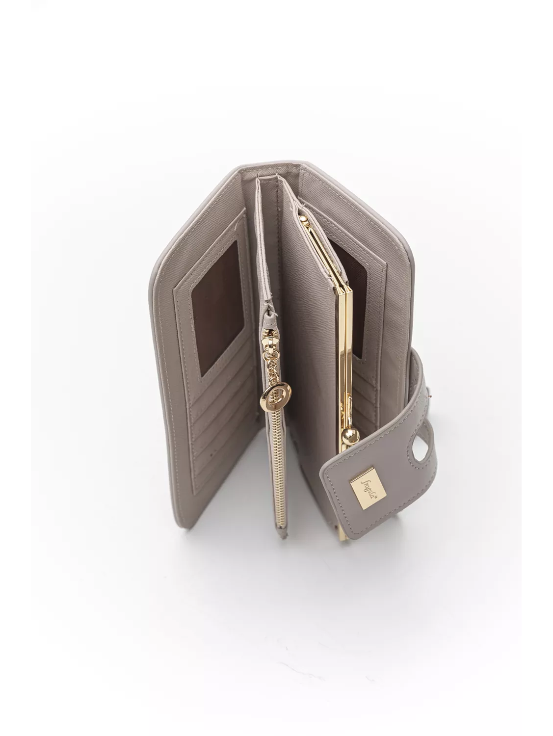 Μεγάλο πορτοφόλι με γλώσσα με μαγνητικό button. Στο εσωτερικό υπάρχουν πολλές θήκες για κάρτες και έξτρα μεγάλες θέσεις για την ταυτότητα και τις σημειώσεις σας. Διαχωρισμένη θήκη με φερμουάρ και έξτρα θήκη με στόμιο. Χώρος στο μέσον του για το κινητό σας ή τις σημειώσεις σας.