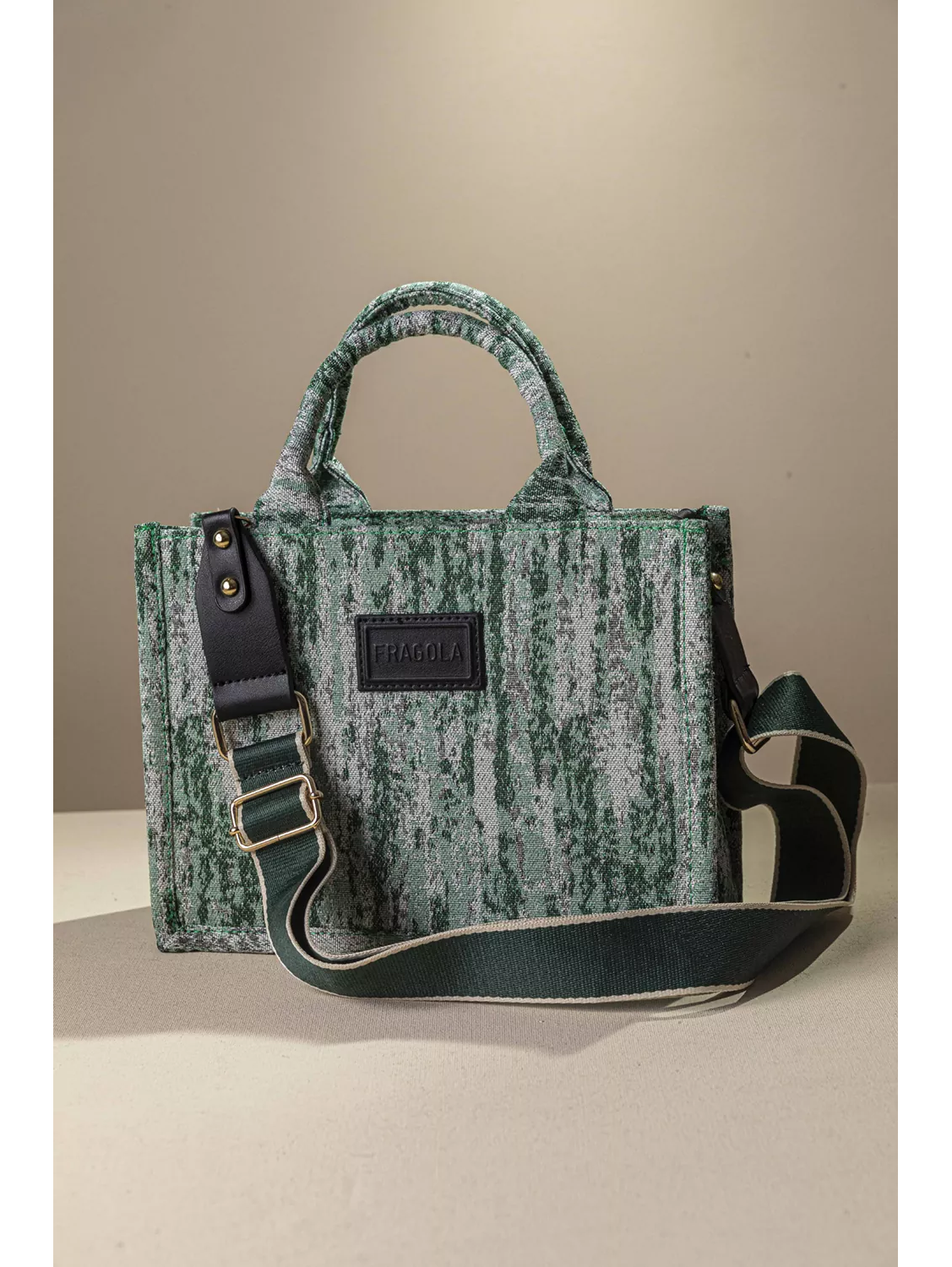 • Κατασκευασμένη από υψηλής ποιότητας υφαντό ύφασμα, προσφέρει ανθεκτικότητα και πολυτελή υφή. • Διαθέτει στιβαρά κοντά χέρια για κράτημα στο χέρι καθώς και αποσπώμενο ρυθμιζόμενο ιμάντα ώμου, επιτρέποντας να φορεθεί άνετα και ως χιαστί. • Οι μεταλλικές λεπτομέρειες σε χρυσό τόνο προσφέρουν κομψότητα ενώ το λογότυπο Fragola στο μπροστινό μέρος, υπογραμμίζει την ταυτότητα που Brand. • Πρακτικό για τα καθημερινά must σας που λόγω του μεσαίου μεγέθους της είναι ιδανική για κράτημα από το πρωί έως το βραδύ, κλείνει με φερμουάρ. Υλικο: Υφαντό πανί σε εντυπωσιακά animal prints, γεωμετρικά σχήματα, μοτίβα από την φύση, και tranditional print.